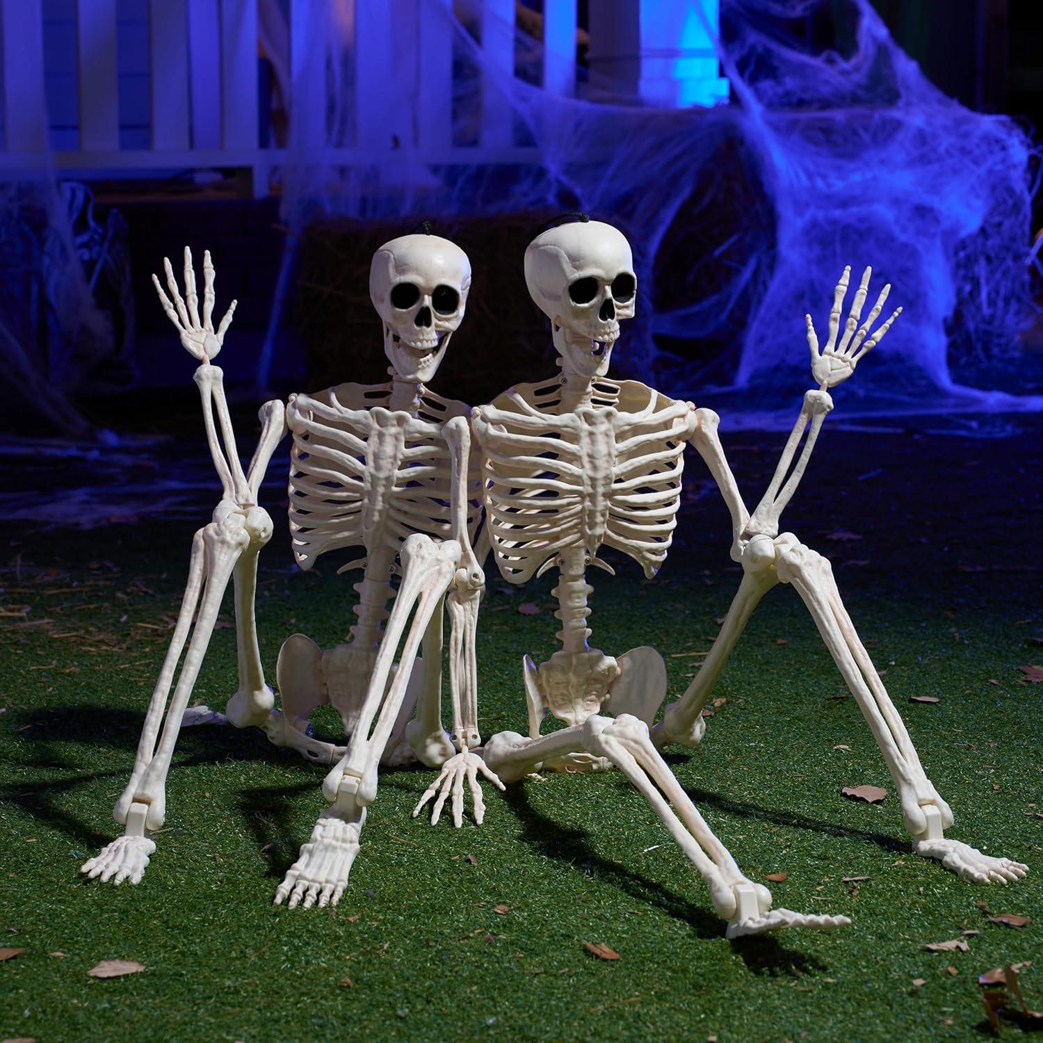 Indoor Outdoor Skeleton Decorations: Includes 2pcs 24″ white posable limbs with knees full body skeleton, all knees can lock in place to hold a position, simple to assemble and disassemble, this halloween posable skeleton is effortless to set up and store, ensuring convenience for seasonal decorations and future spooky occasions.