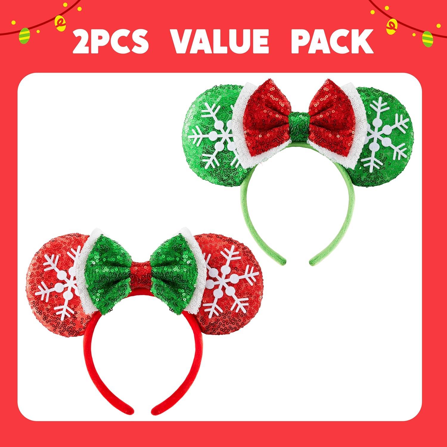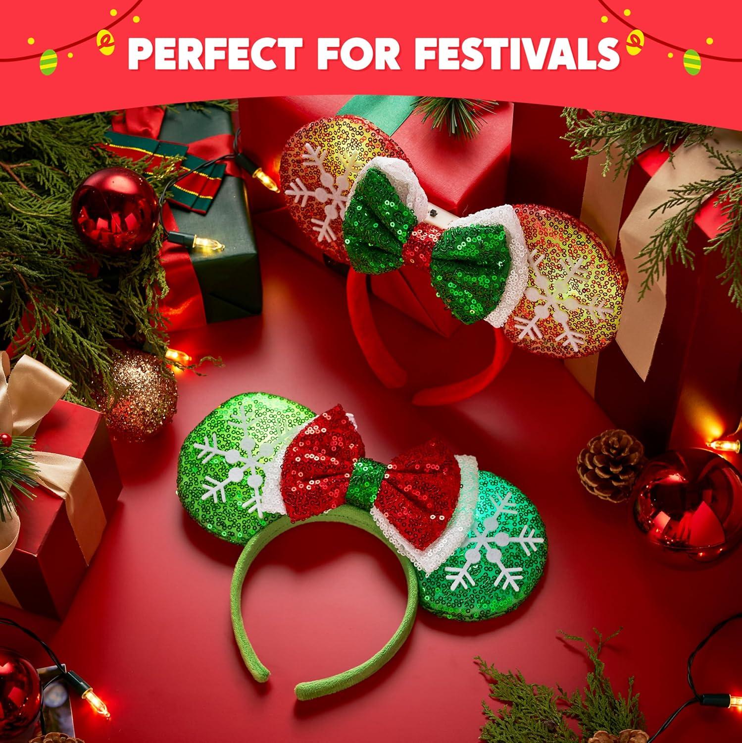 Christmas style: This quality Xmas-themed design combines beloved mouse ear silhouettes with traditional holiday colors. The red, white, and green details create instant Christmas magic that lights up any party or photo!