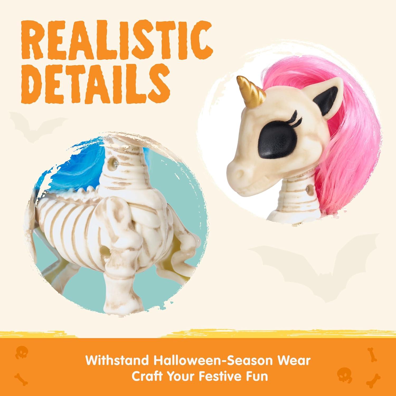Petite 4.5-Inch Size: Compact and portable, this mini skeleton unicorn fits anywhere—perch it on shelves, desks, or use it as unicorn skeleton Halloween decoration in themed displays, fairy gardens, or party setups.