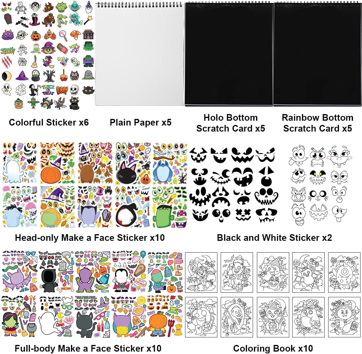 UNIQUE DESIGN & EASY TO USE. Our craft kit includes many different DIY crafts for your kids. Your children can decorate their own Halloween characters with these DIY craft stickers, coloring books or scratch cards. Children would enjoy decorating their favorite ghost, vampire or monster with their friends. Perfect for anyone to feely customize and create halloween characters. Also good for teamwork for kids to play together.