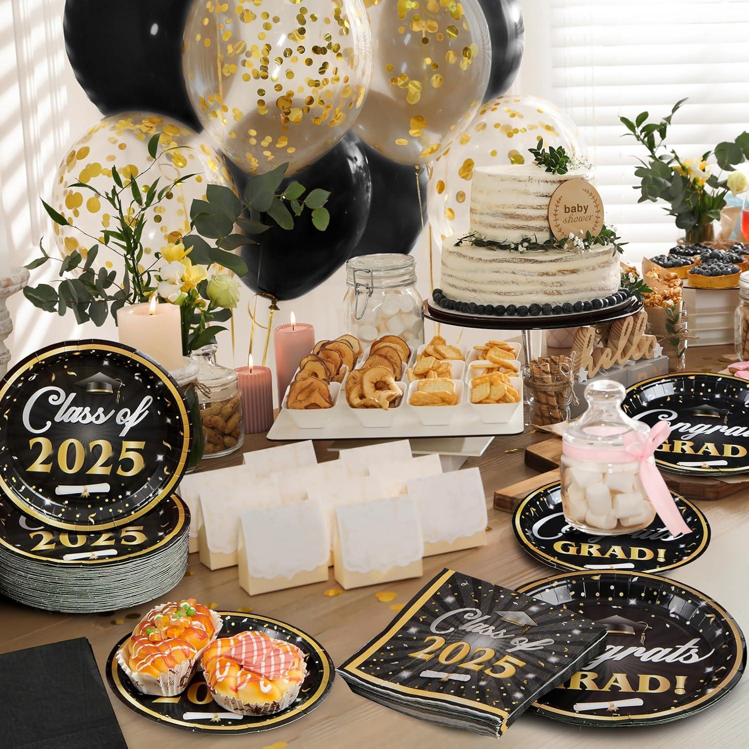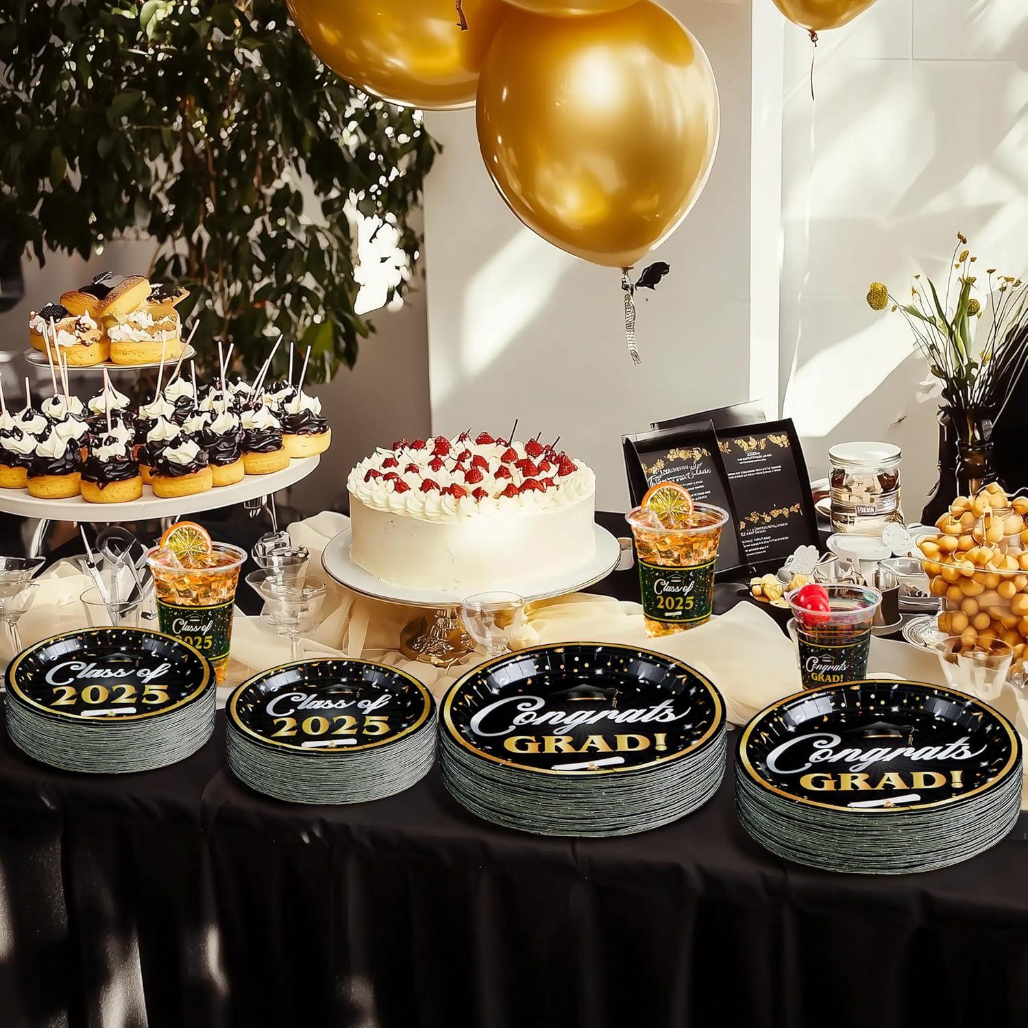 Convenient & Versatile Party Tableware: The disposable plates and napkins party supplies which can save you from the hassle of cleaning spills and washing at the party. Perfect for serving diverse snacks, desserts, and meals, this set also doubles as a striking party decoration to make your grad celebration truly special.