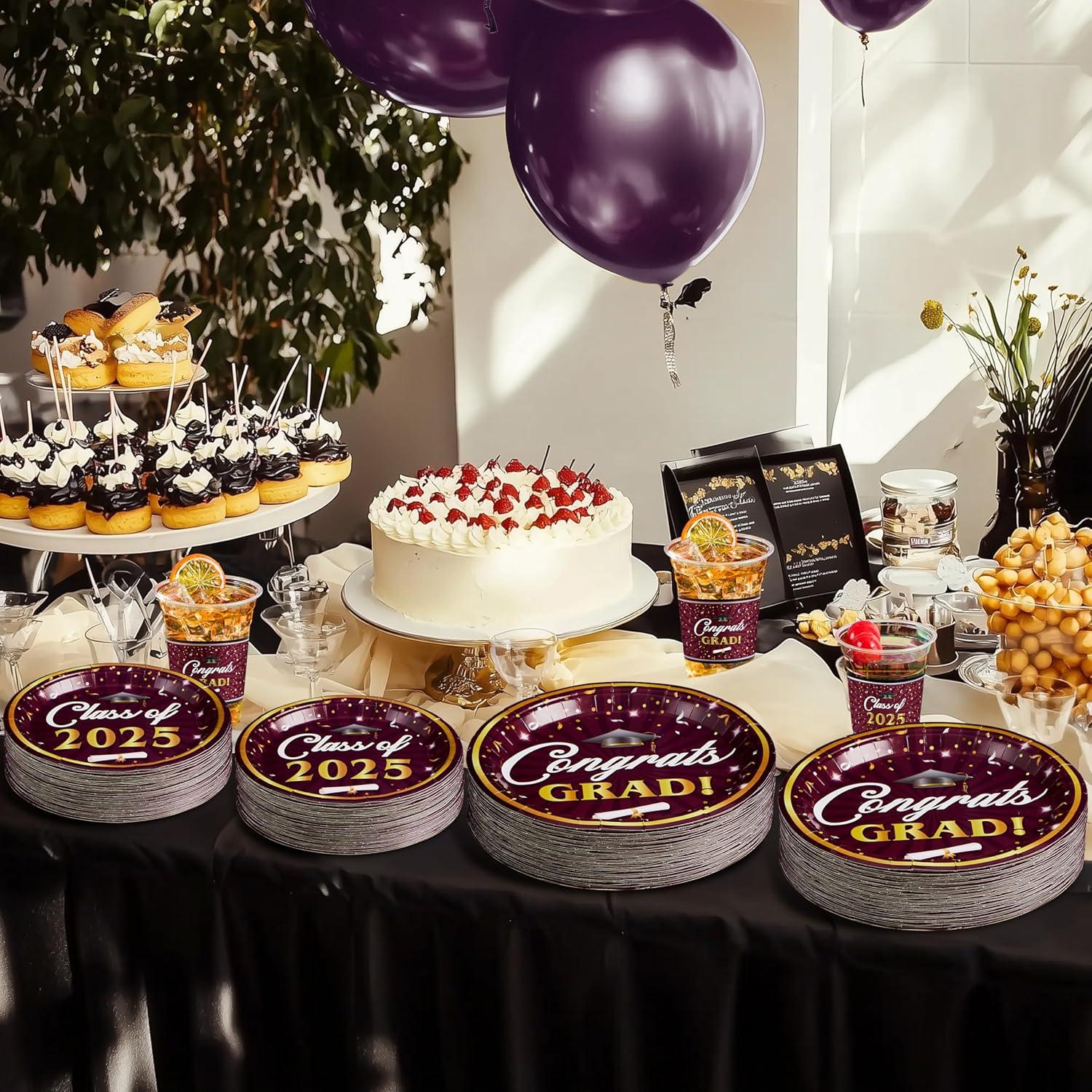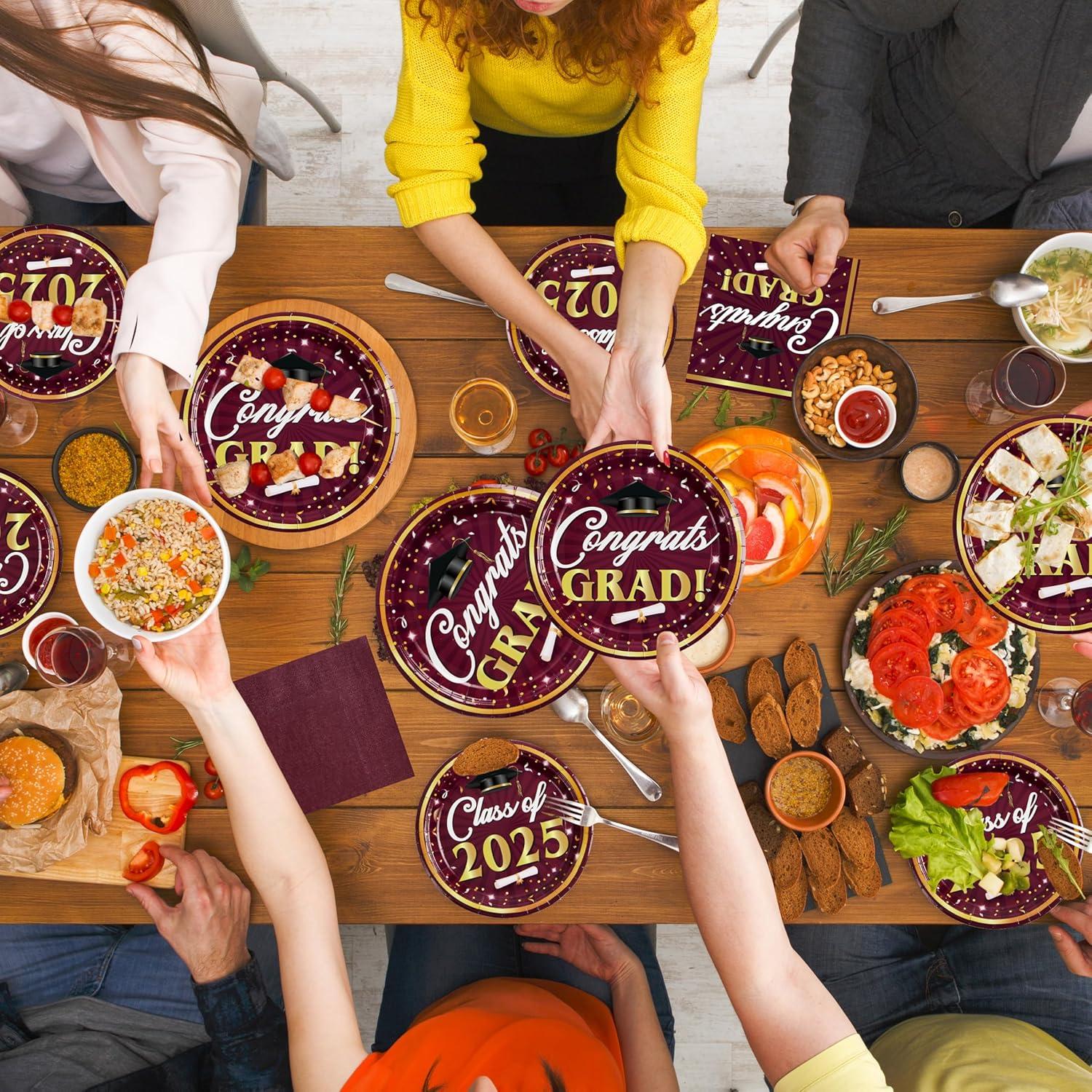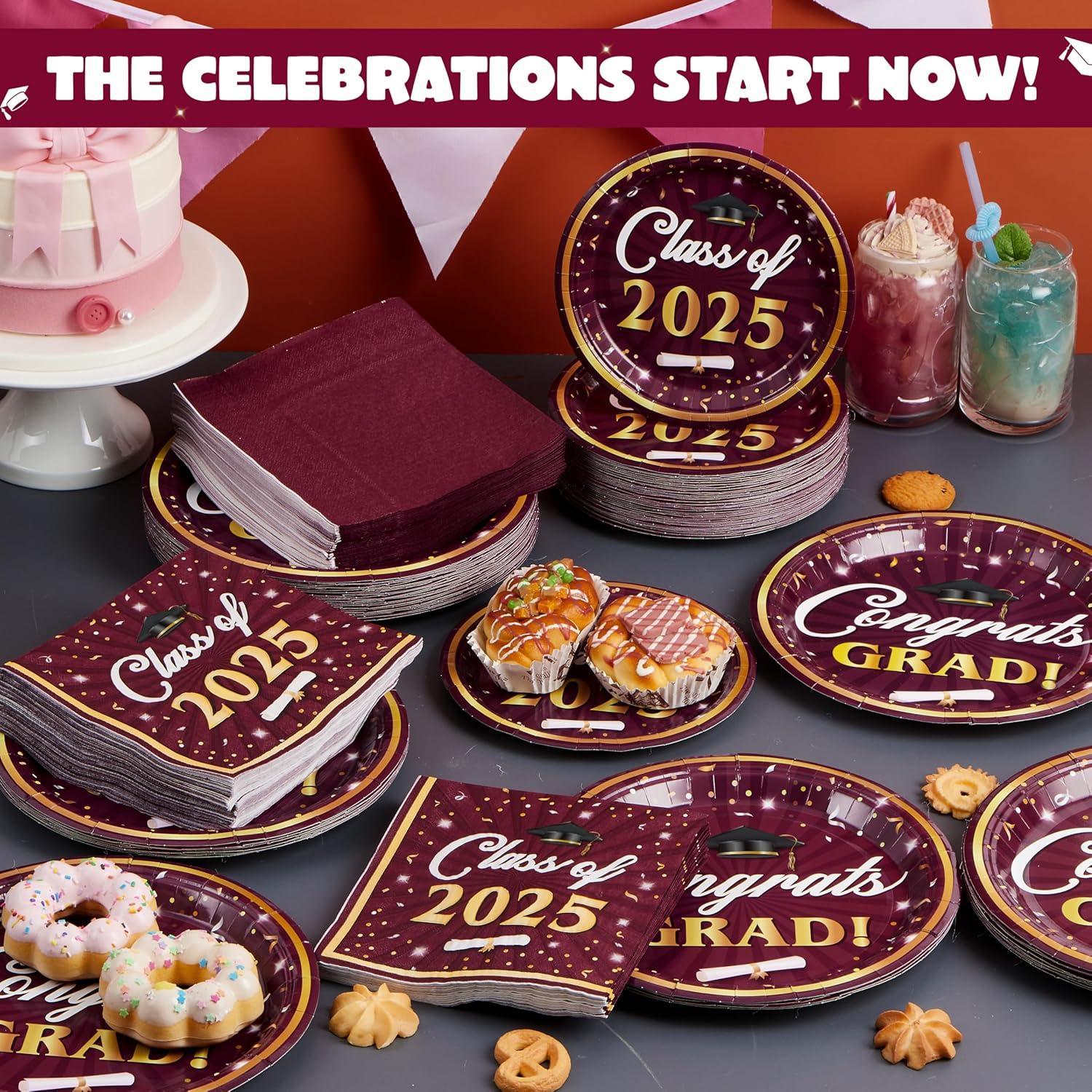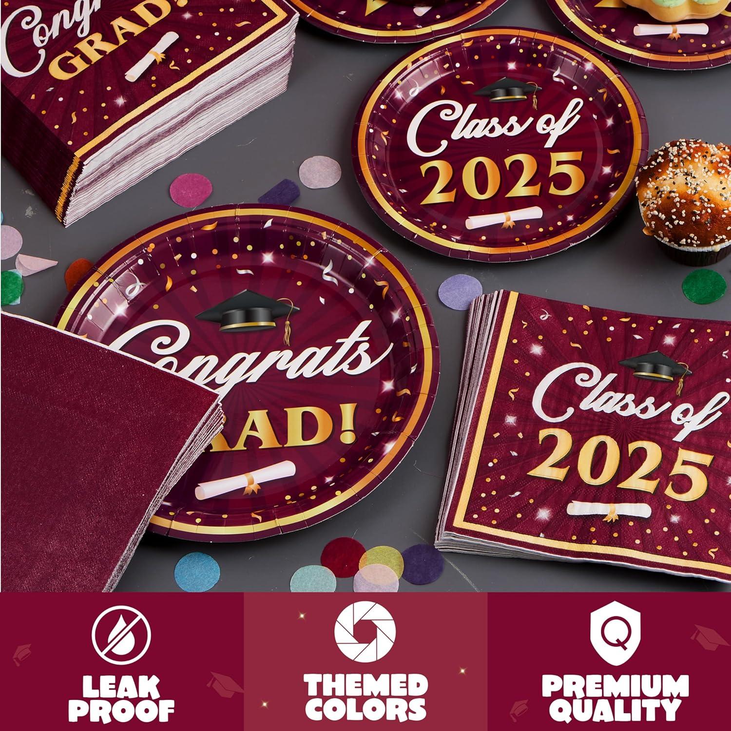 Convenient & Versatile Party Tableware: The disposable plates and napkins party supplies which can save you from the hassle of cleaning spills and washing at the party. Perfect for serving diverse snacks, desserts, and meals, this set also doubles as a striking party decoration to make your grad celebration truly special.