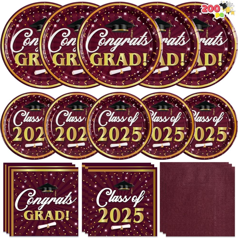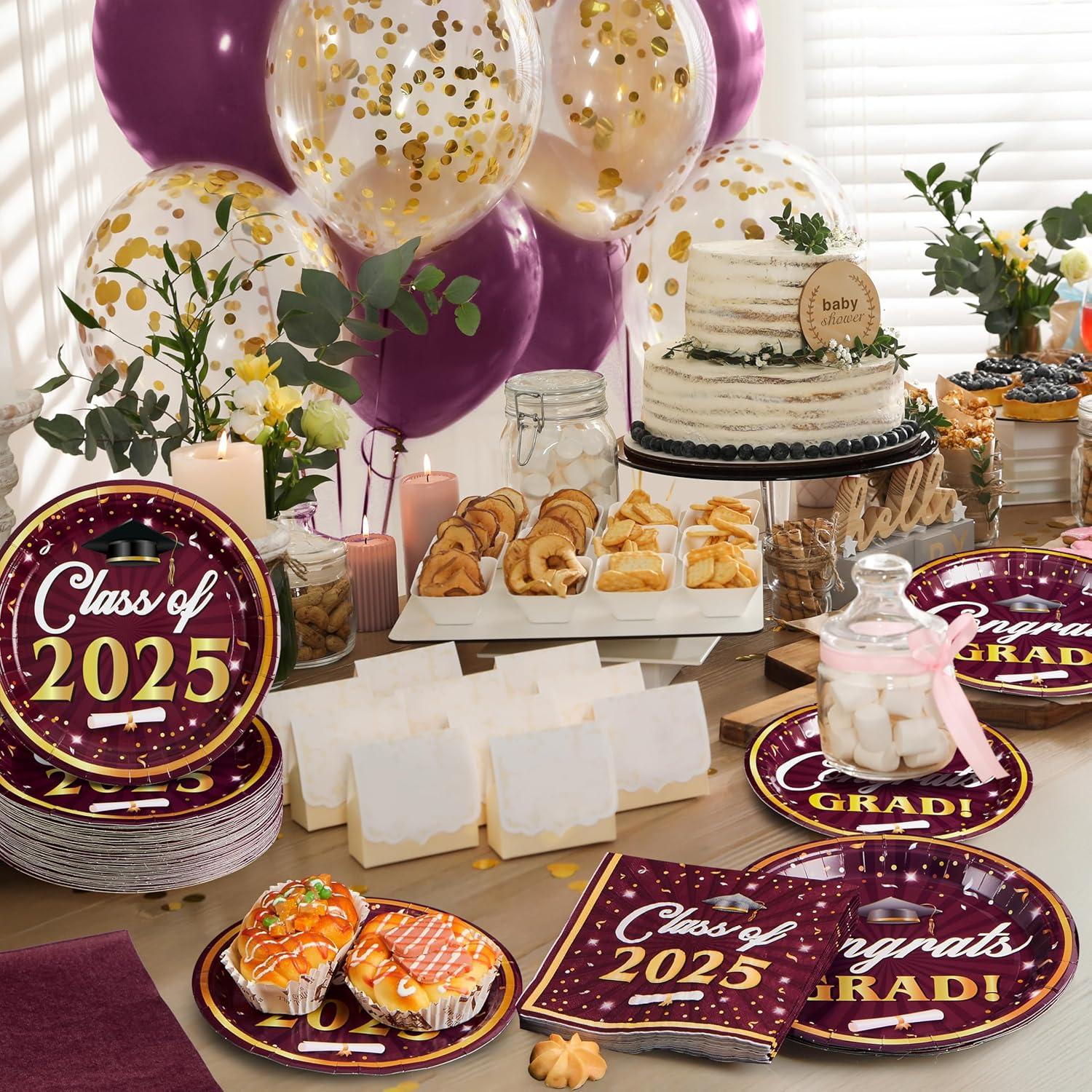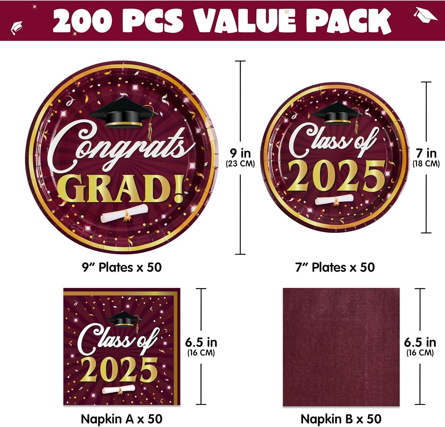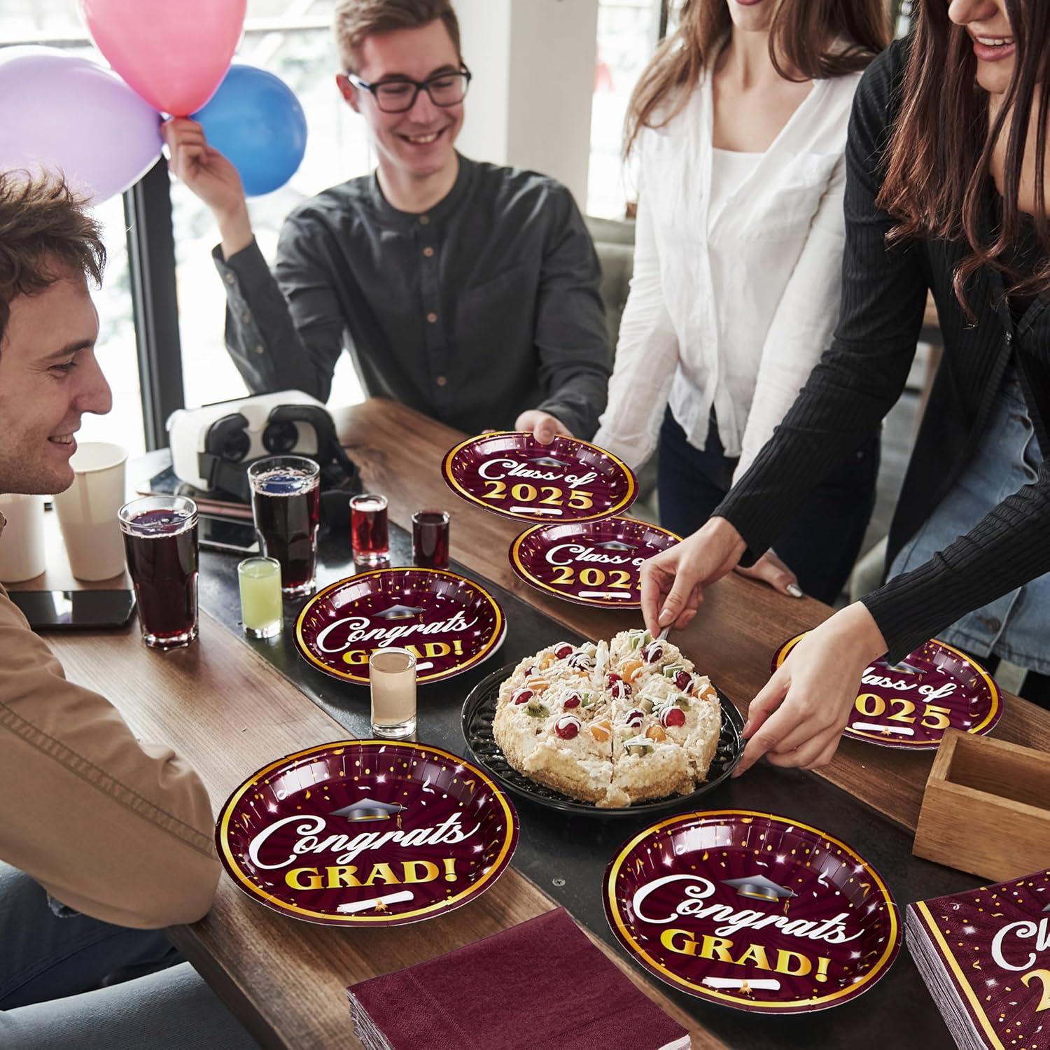 Convenient & Versatile Party Tableware: The disposable plates and napkins party supplies which can save you from the hassle of cleaning spills and washing at the party. Perfect for serving diverse snacks, desserts, and meals, this set also doubles as a striking party decoration to make your grad celebration truly special.