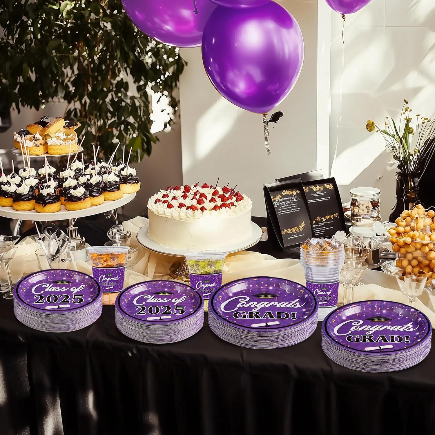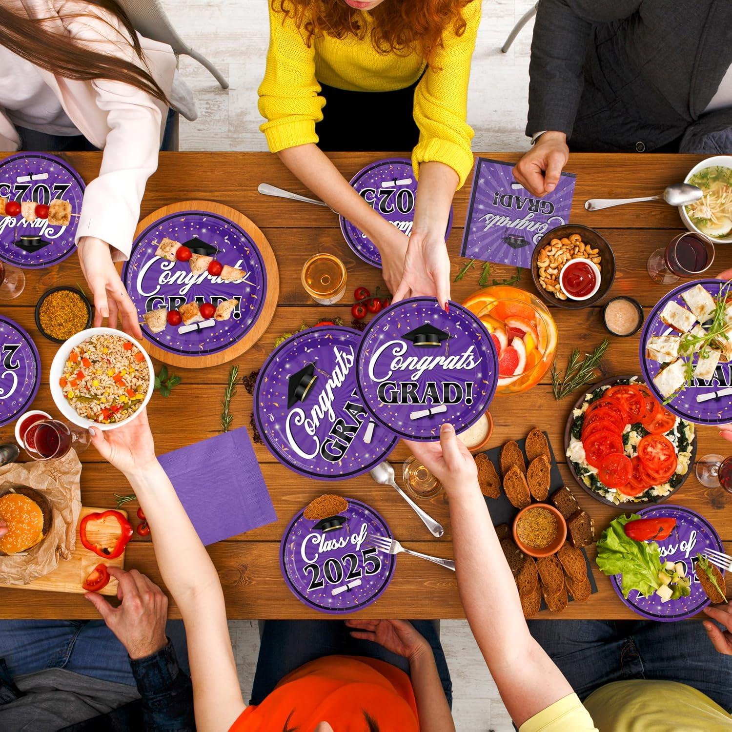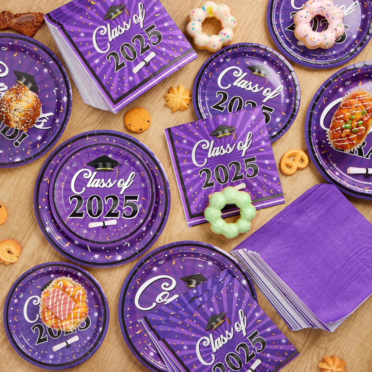 JOYIN 2025 Graduation Party Plates and Napkins Orange Tableware Set Supplies, 200 PCS Graduation Disposable Paper Plates Cocktail Napkins for Congrats Grad Party Decorations Celebration, Serve 50(Purple)
