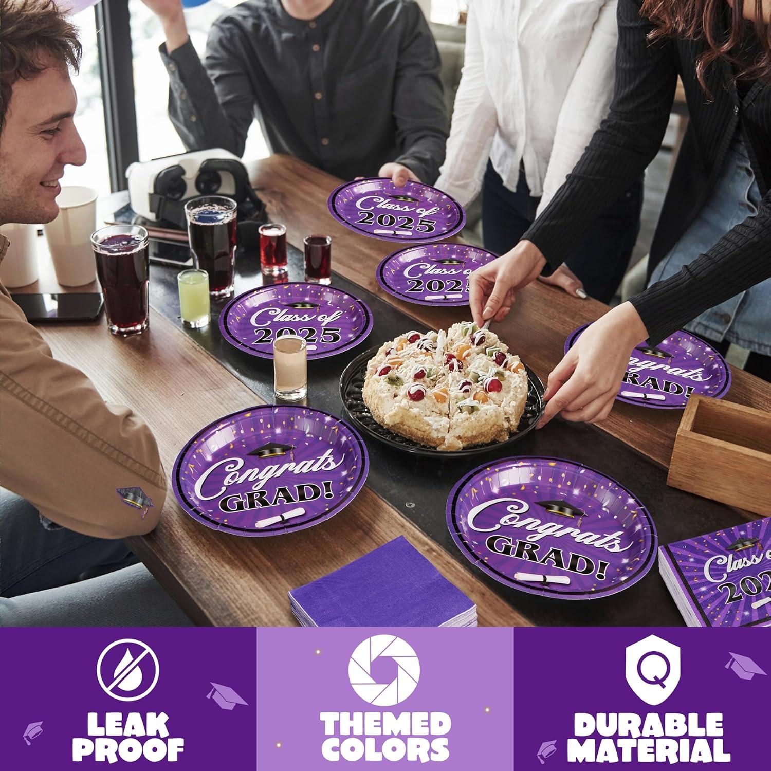 Convenient & Versatile Party Tableware: The disposable plates and napkins party supplies which can save you from the hassle of cleaning spills and washing at the party. Perfect for serving diverse snacks, desserts, and meals, this set also doubles as a striking party decoration to make your grad celebration truly special.