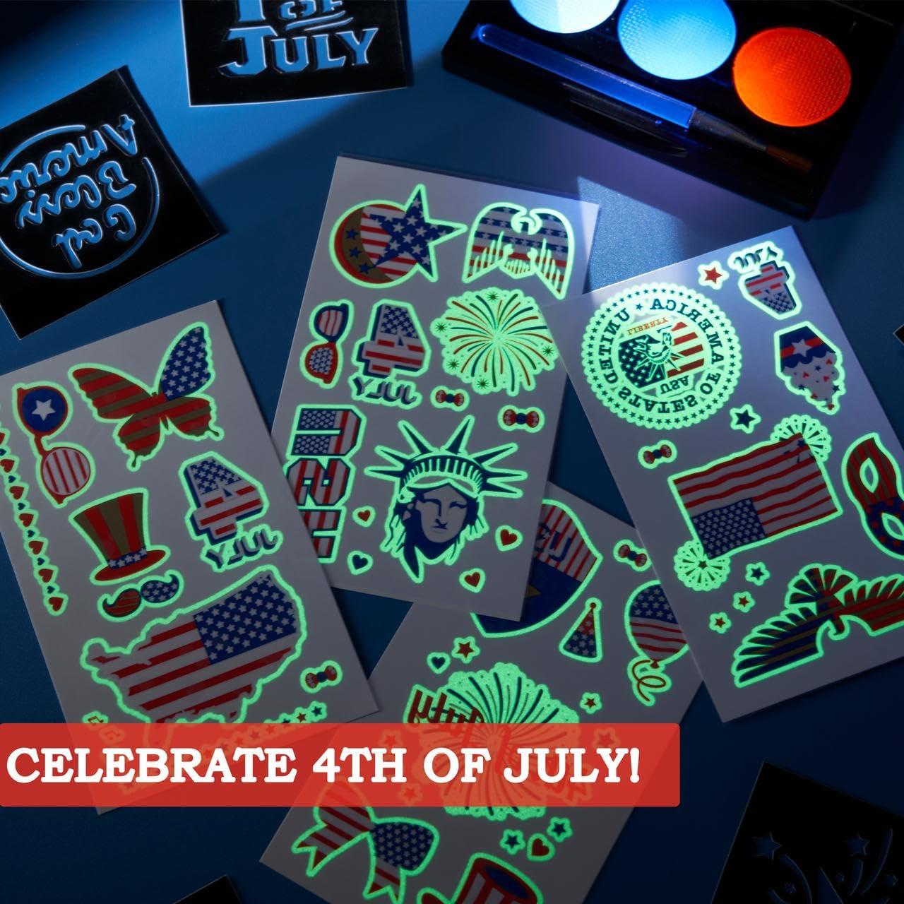 Blacklight Makeup: The face paints and tattoos glow better under blacklight, making your designs stand out at July 4th festive nighttime celebrations and parties.