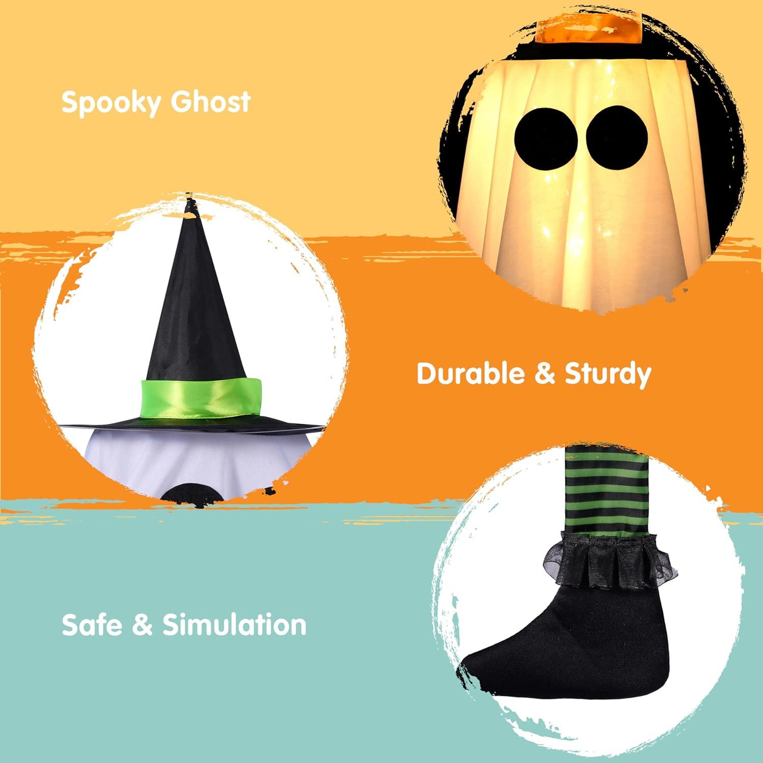 Dual-Themed Spooky Versatility: This halloween decor piece merges two iconic Halloween symbols—ghost decorations and hanging witch hats—into one striking prop. Perfect for outdoor witch decorations or halloween decorations indoor, it effortlessly transitions between eerie ghostly vibes and witchy enchantment. Pair it with ghost decor clusters or standalone as a prime halloween decoration for patios and yard.
