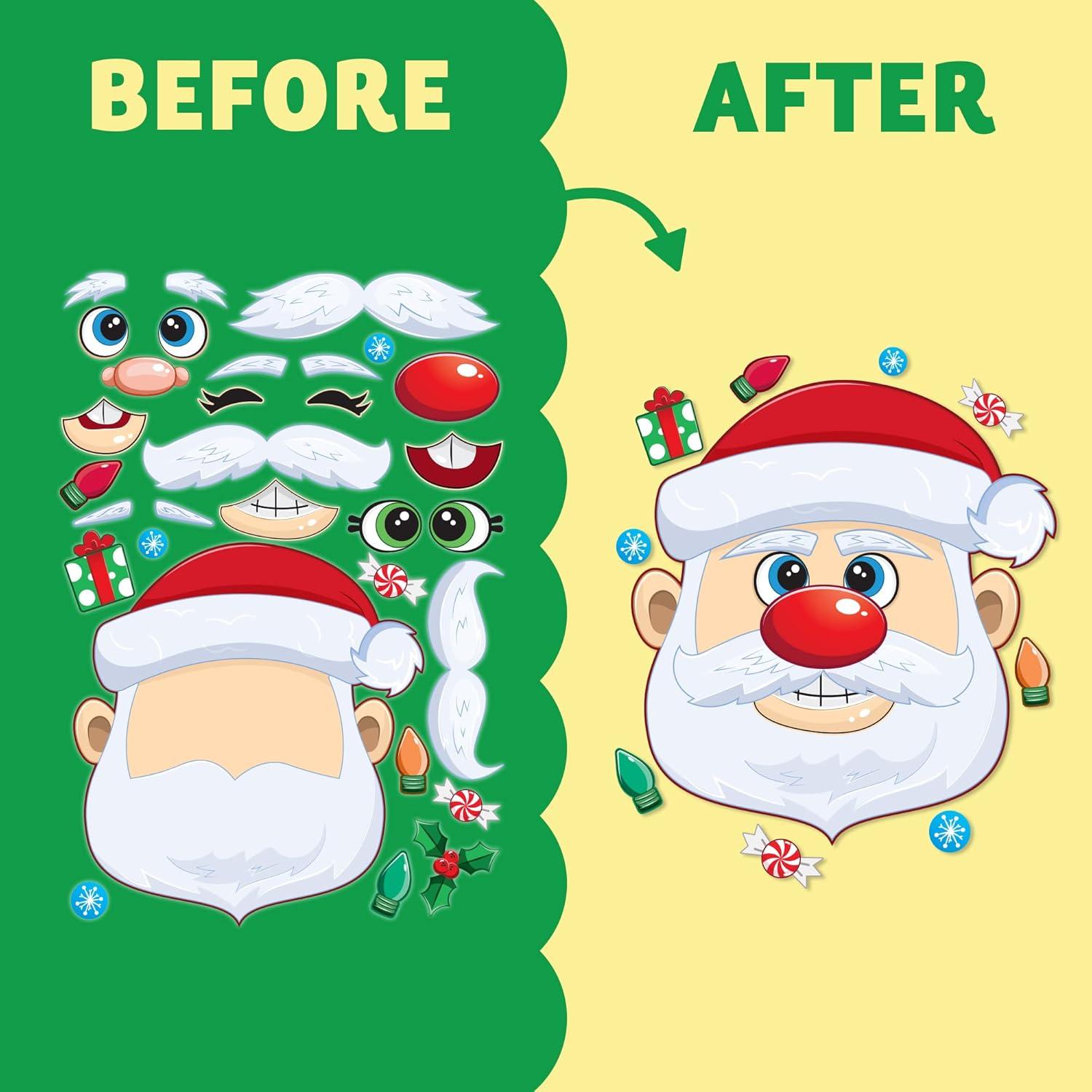 SUPER VALUE PACK: 24pcs, 8 Festive Designs – Includes 24 sticker sheets with mix-and-match face parts, featuring 8 fun characters to decorate. Perfect for group play and holiday activities!