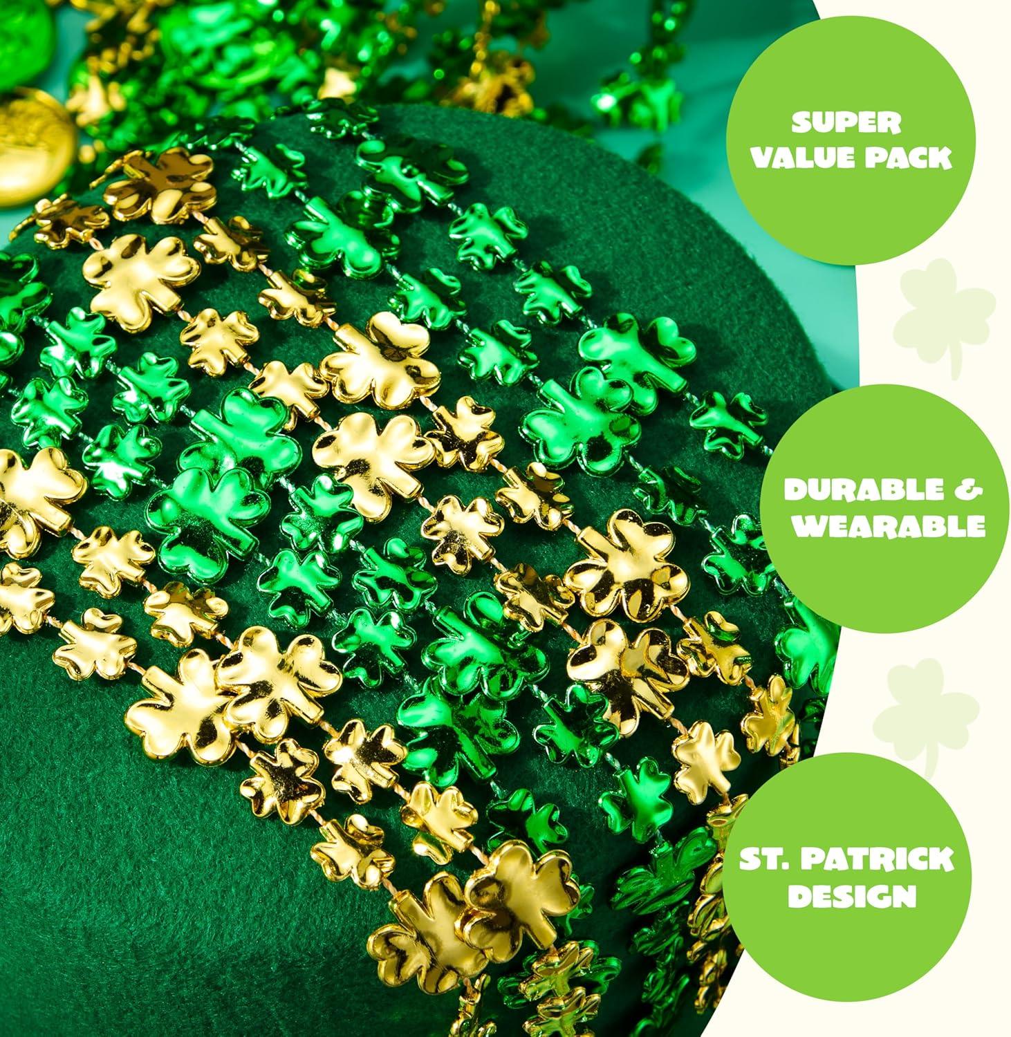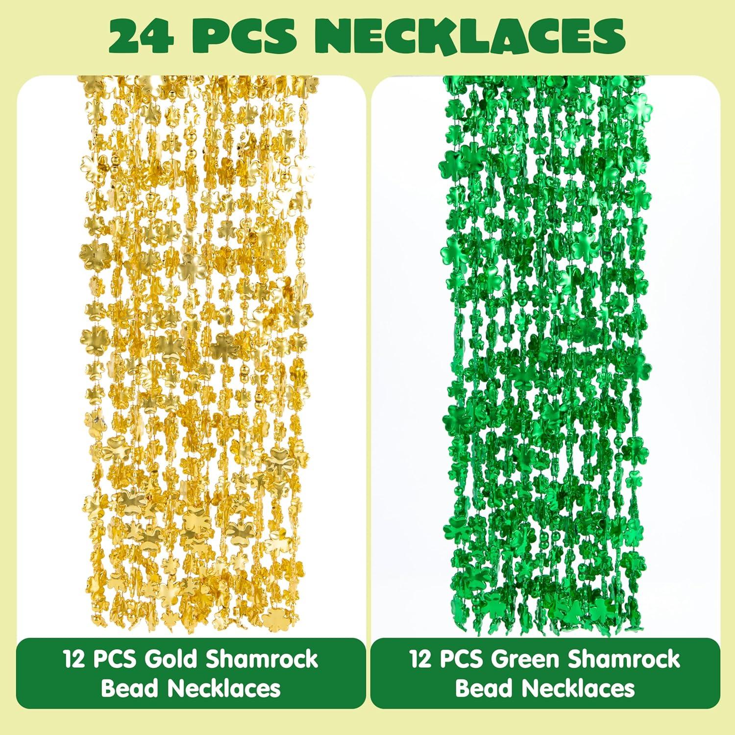 Super Value Pack: You will receive 24 Pcs St. Patrick's Day Shamrock Bead Necklaces Set, including 12 green necklaces and 12 golden beaded necklaces, ensuring that you and your entire squad are ready to dive into the spirit of St. Patrick's Day.