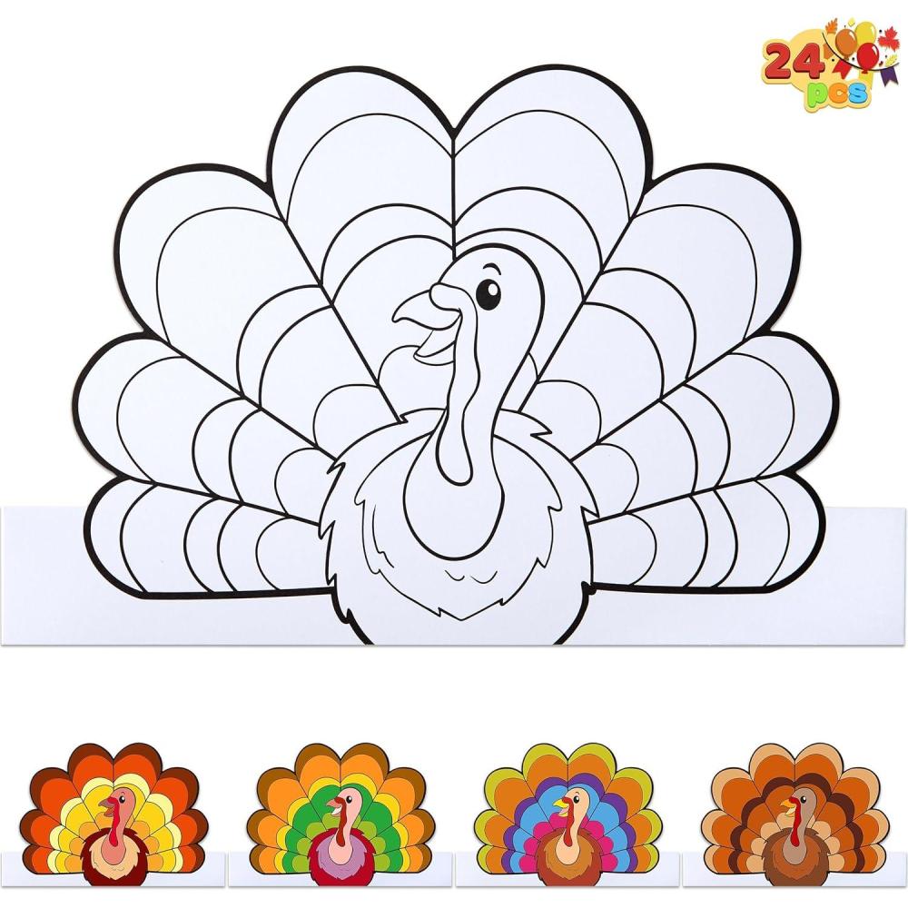 JOYIN 24 Pcs Thanksgiving Coloring Headbands, Color Your Own Turkey Crowns Kids Craft Set for Thanksgiving Kids School Activities Class Events Party Decoration Supplies