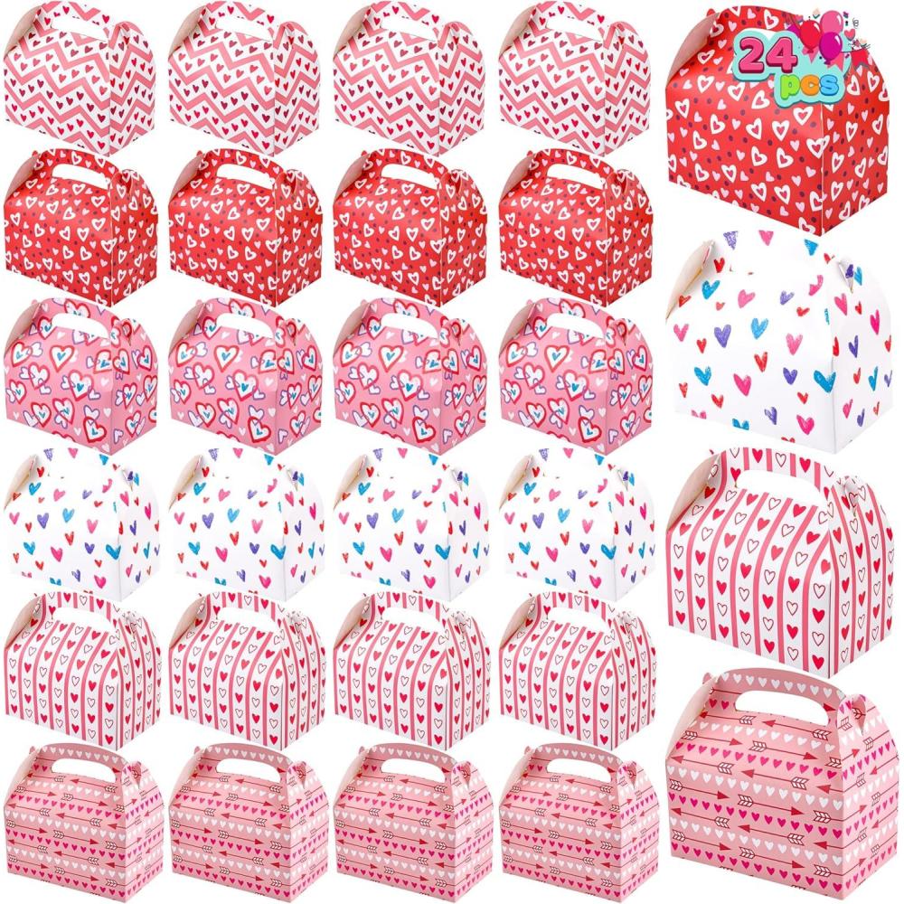 JOYIN 24 Pcs Valentine’s Day Gift Treat Boxes, Cookie Boxes with Colorful Heart shaped Design for Kids Party Favor, Classroom Exchange Prizes, Valentines Candy Boxes(pink)