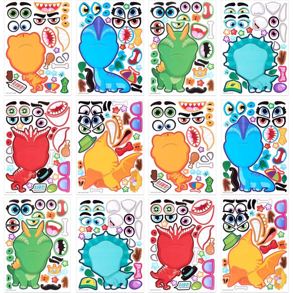 JOYIN 24 Sheets 9"x6" Make a face Stickers for Kids, Make Your Own Stickers with Unicorn, Dinosaur, Sea and Safari Animals, Party Favors Kids Crafts, Goodie Bags Stuffers Classroom Activities(Dinosaur)