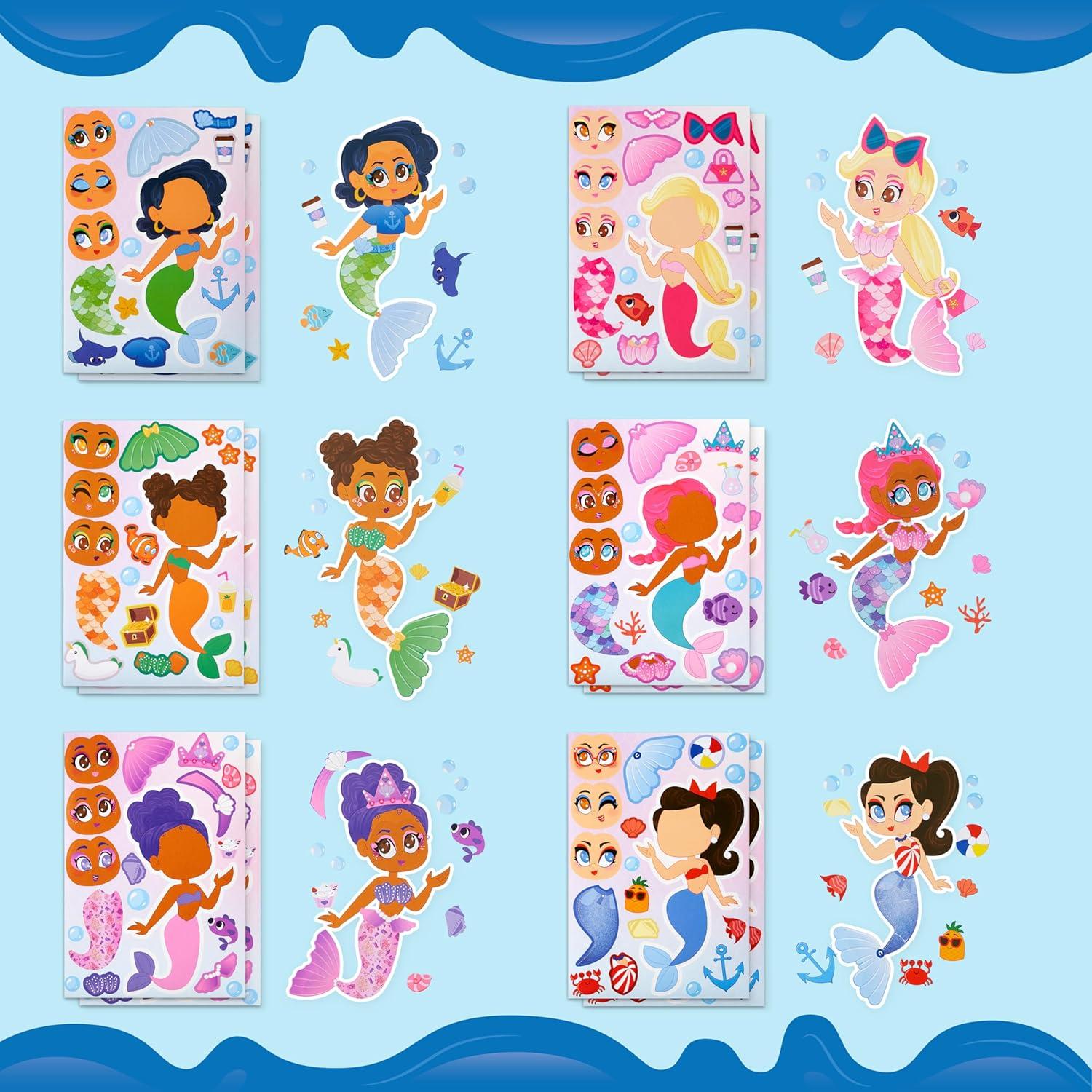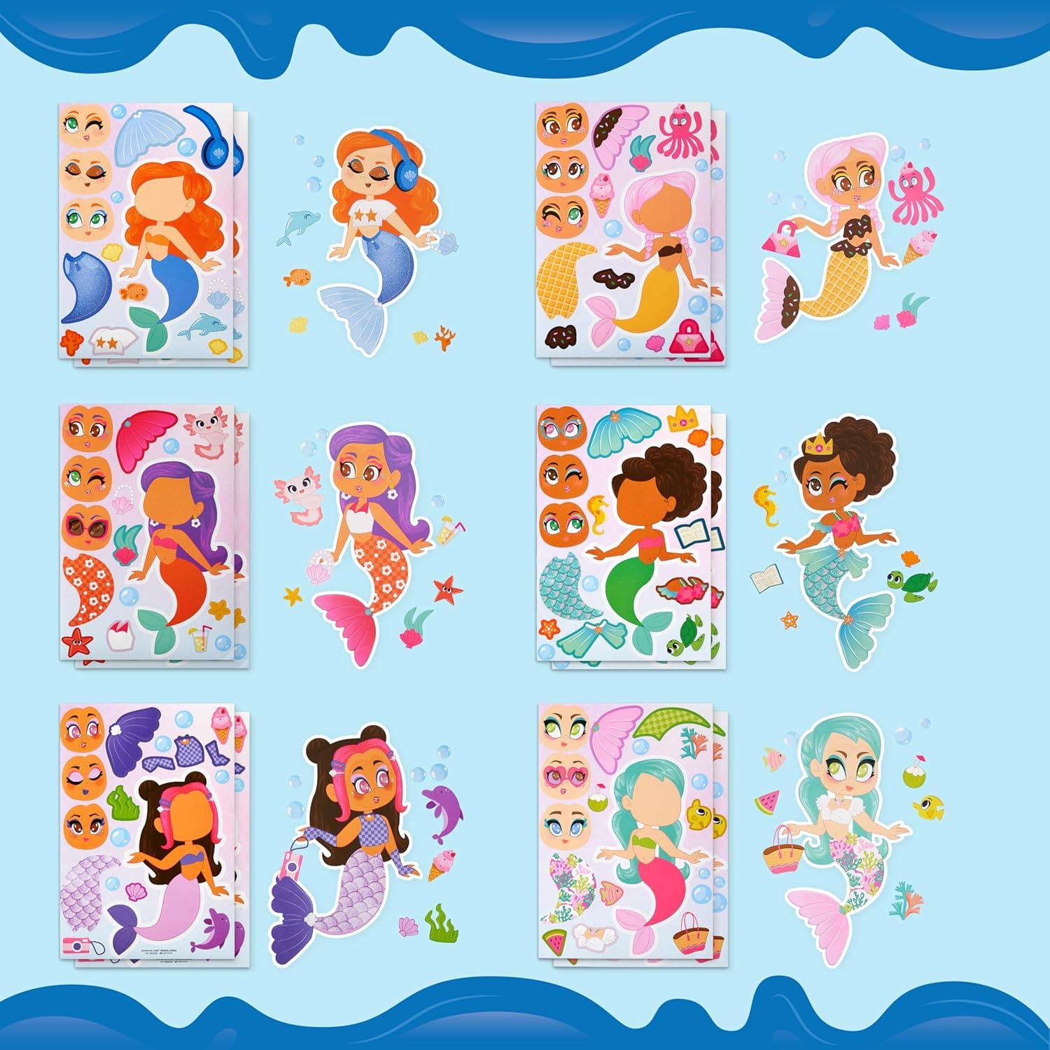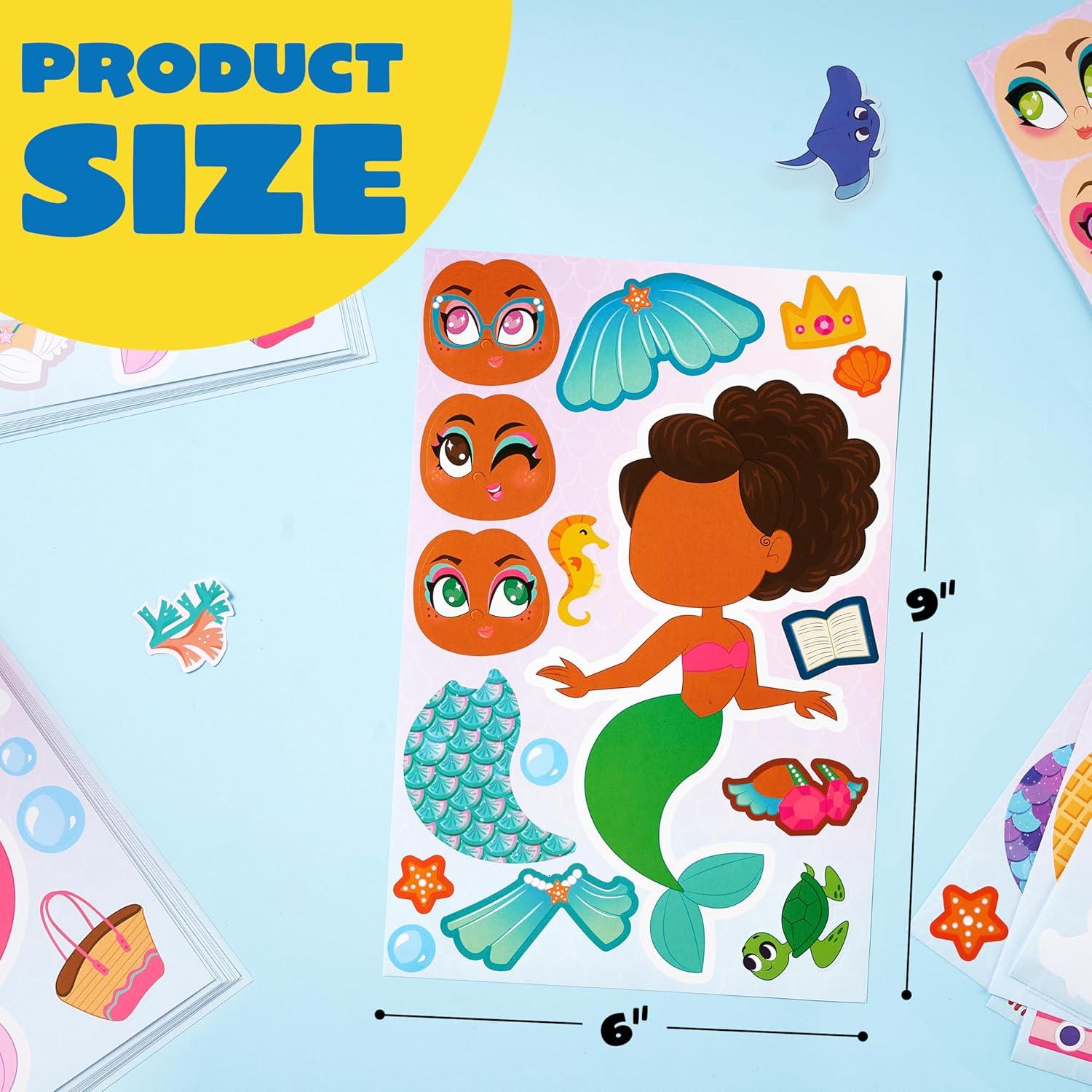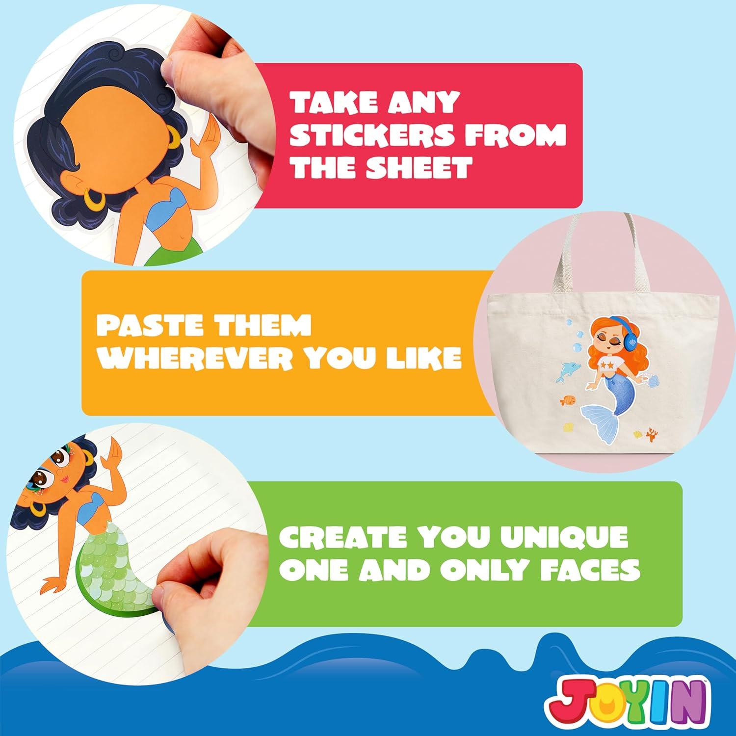 JOYIN 24 Sheets 9"x6" Make a face Stickers for Kids, Make Your Own Stickers with Unicorn, Dinosaur, Sea and Safari Animals, Party Favors Kids Crafts, Goodie Bags Stuffers Classroom Activities(Mermaid)
