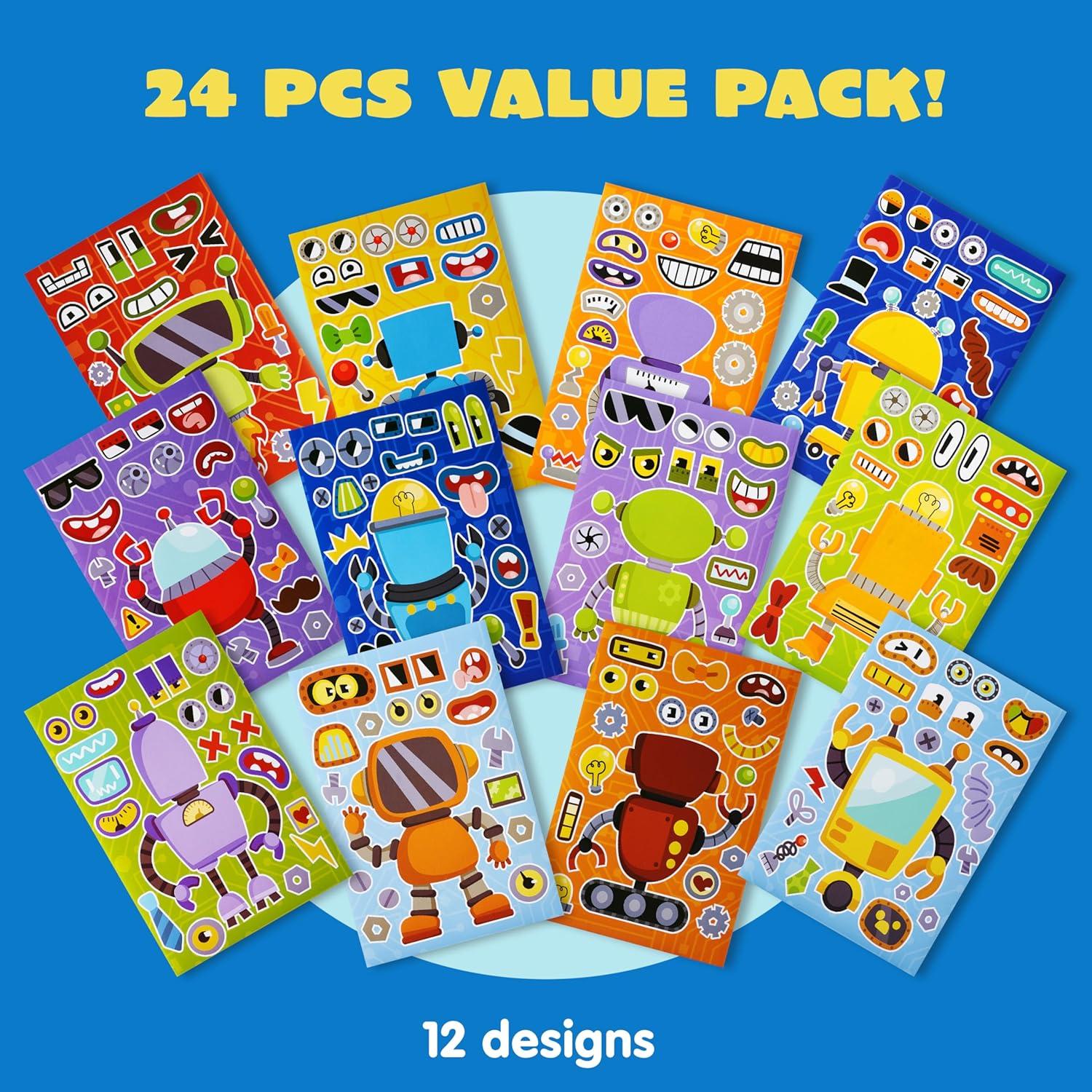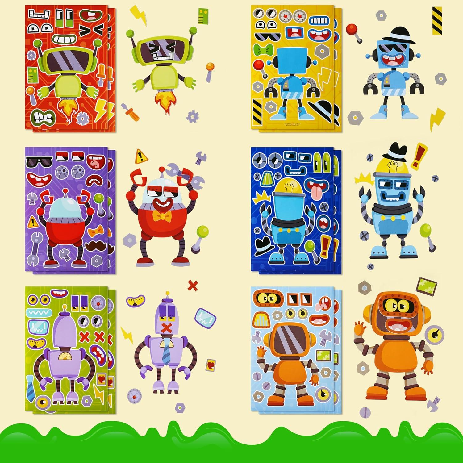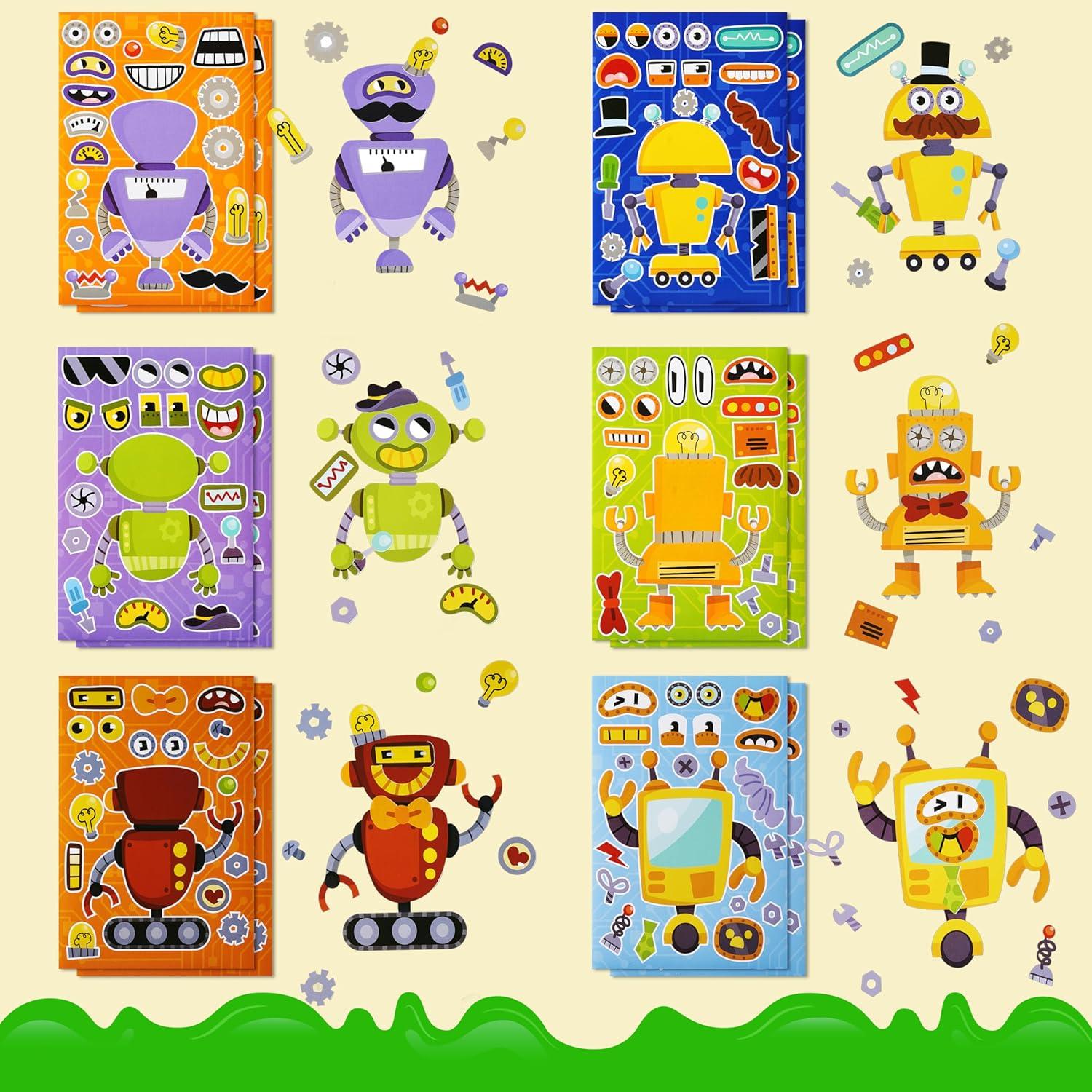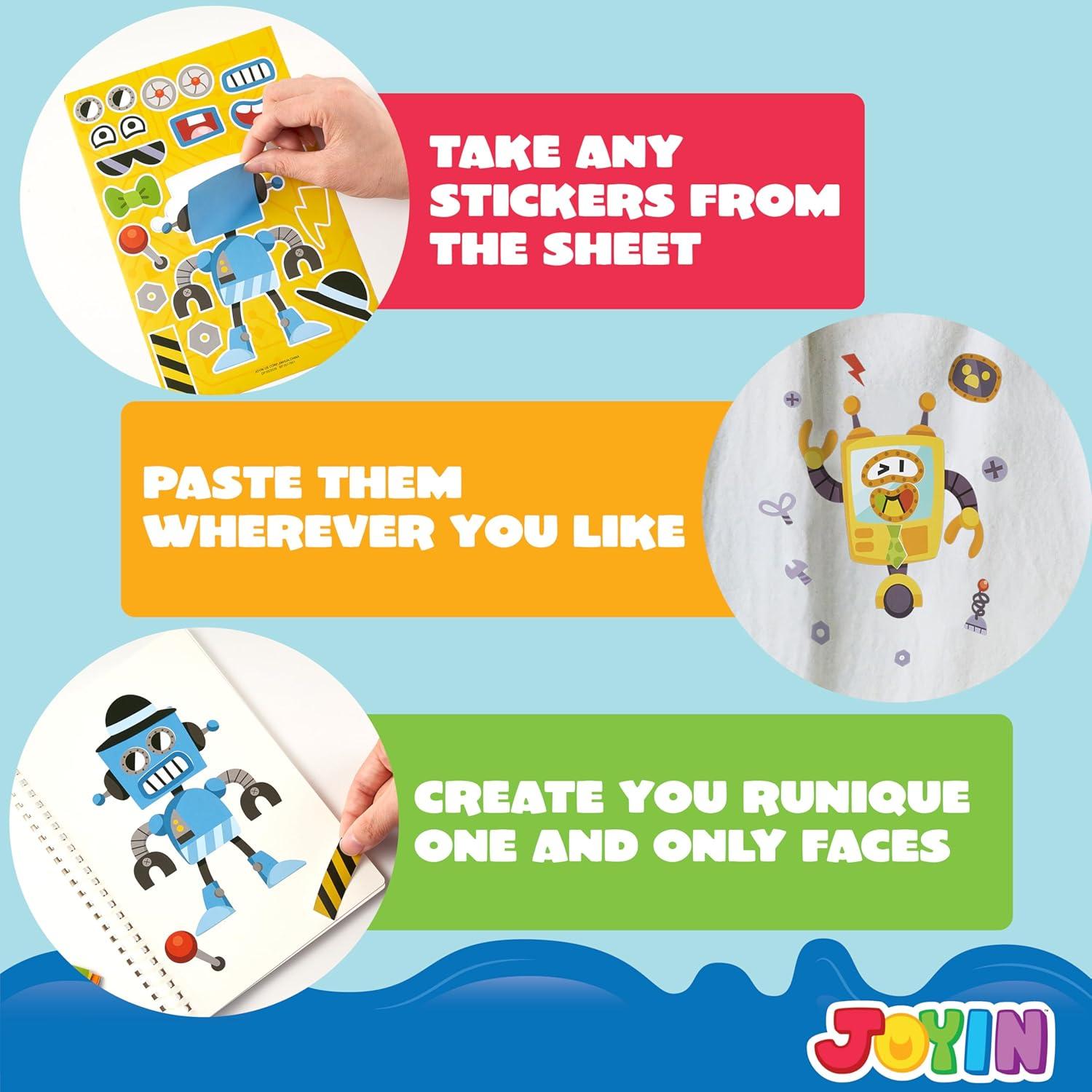 JOYIN 24 Sheets 9"x6" Make a face Stickers for Kids, Make Your Own Stickers with Unicorn, Dinosaur, Sea and Safari Animals, Party Favors Kids Crafts, Goodie Bags Stuffers Classroom Activities(Robot)
