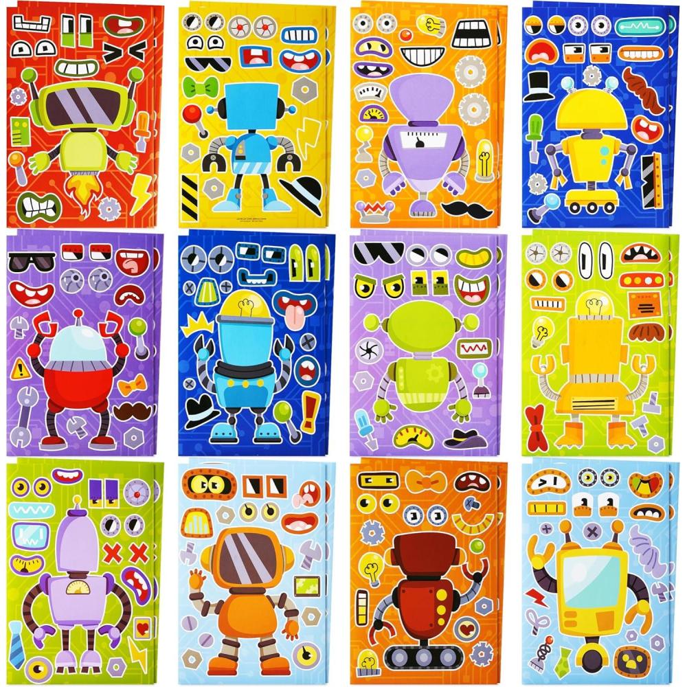 JOYIN 24 Sheets 9″x6″ Make a face Stickers for Kids, Make Your Own Stickers with Unicorn, Dinosaur, Sea and Safari Animals, Party Favors Kids Crafts, Goodie Bags Stuffers Classroom Activities(Robot)