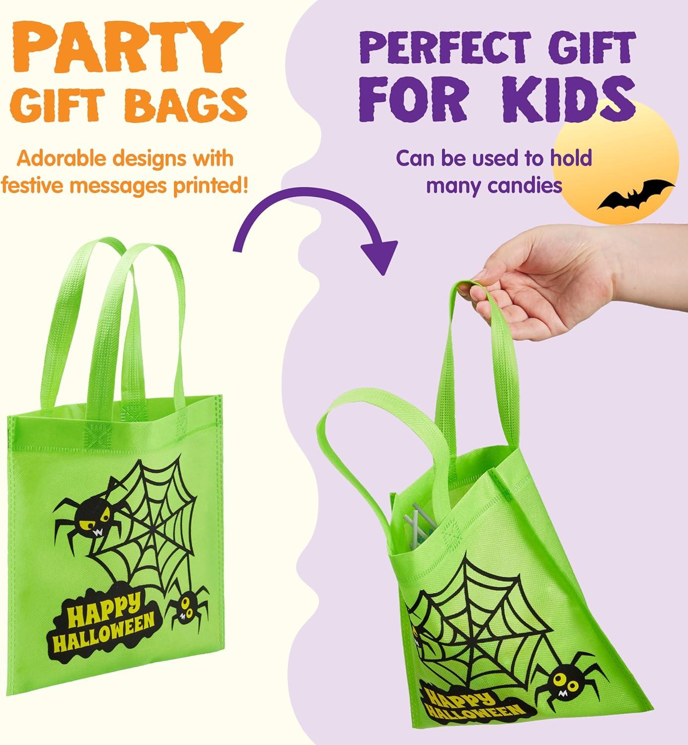 🎃Premium Quality. Our halloween party favor bags bulk for kids are made of high-quality non-woven fabric, lightweight and durable, easy to carry, suitable for children. Child Safe. Non-Toxic. Meet the US toy standard. Safety test approved.