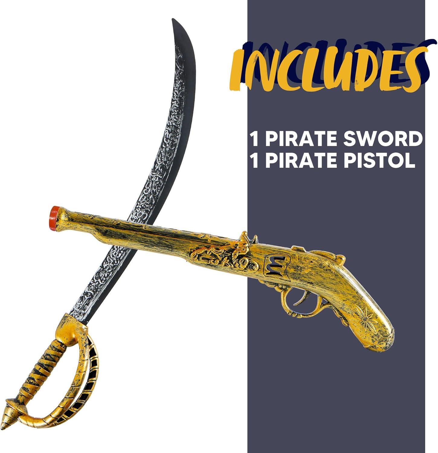PERFECT SIZE: Pirate Pistol is 16 Inches and Pirate Sword is 28 Inches. Good Sizes for Both Kids and Adults