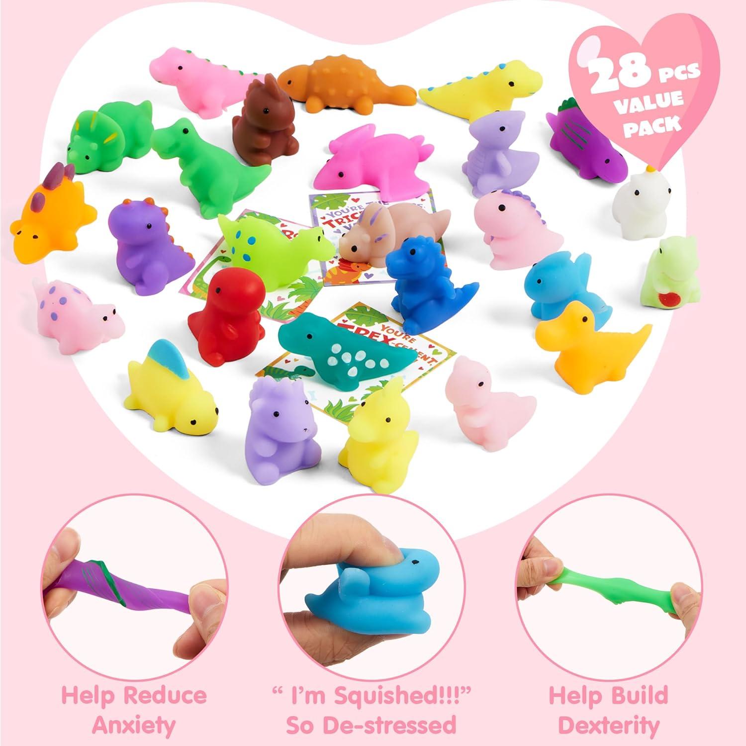 SUPER VALUE COMPREHENSIVE SET. Our Mini Mochi squishy toy includes 28 gift cards with 28 kawaii mochi squishy toy. Cards have 7 designs with cute mochi patterns, every card has a cute, humorous messages. Animal mochi squishy toy have 7 cute animal designs.