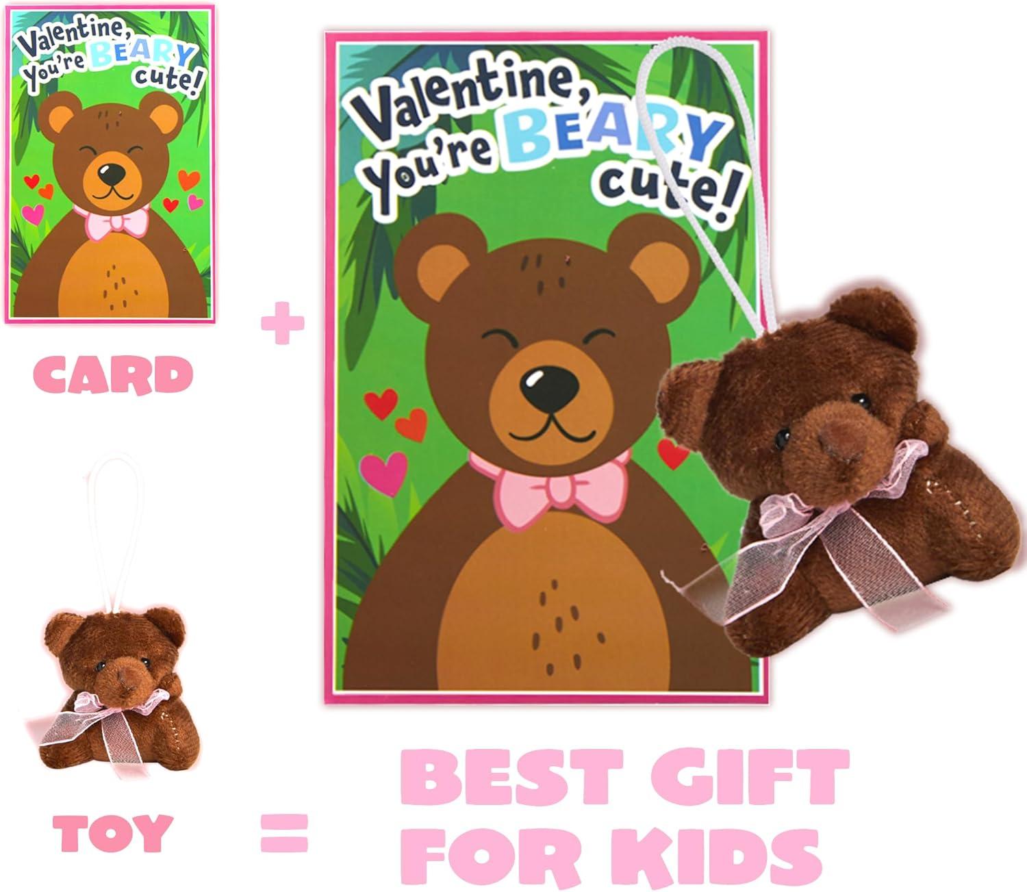 SUPER VALUE PACK. Our Animal Plush with Valentine Cards set includes 28 pieces of cute animal plush and 28 pieces of valentine cards consisting of humorous and lovely messages that match with the Plush Animals toys.