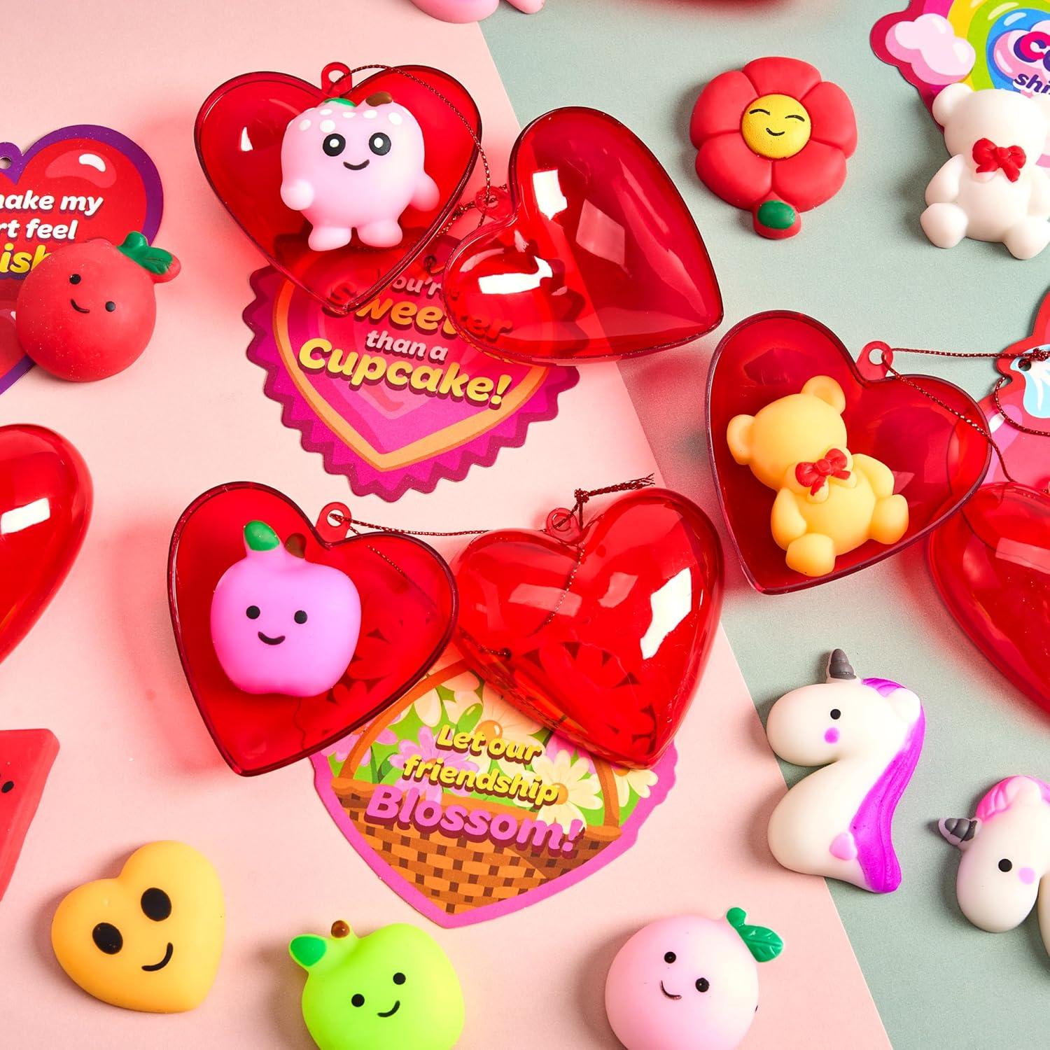 GIFT OF CHOICE: A warm gift for Classroom Exchange, each Cute Mochi comes with a matching card and heart shell to assemble them together, adding a personalized touch to the Valentine's Day celebration. Beyond classroom exchanges, these Mochi squishy toys make fantastic Valentine's Day, Holiday party favors,Gift Exchange, Treasure Box Prizes, School Prize, Love Notes and any Occasions, also serve as year-round stress relief and fidget toys, bringing a calming sense of emotion wherever they go.