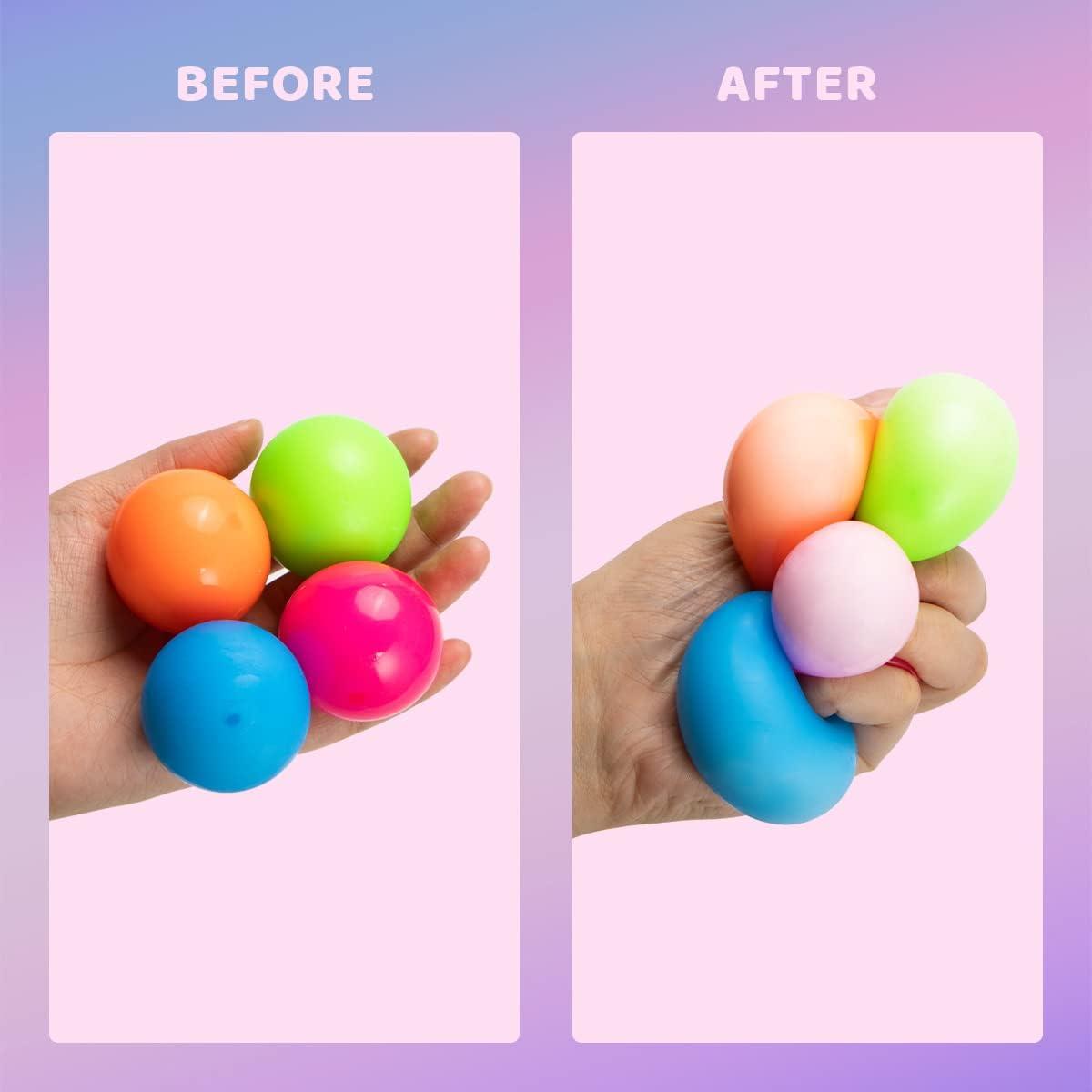 UNIQUE DESIGN. There are 4 colors of the stretchy ball set with 4 card designs. Each with attractive decorations, and special punchline matching a Toys’ theme.