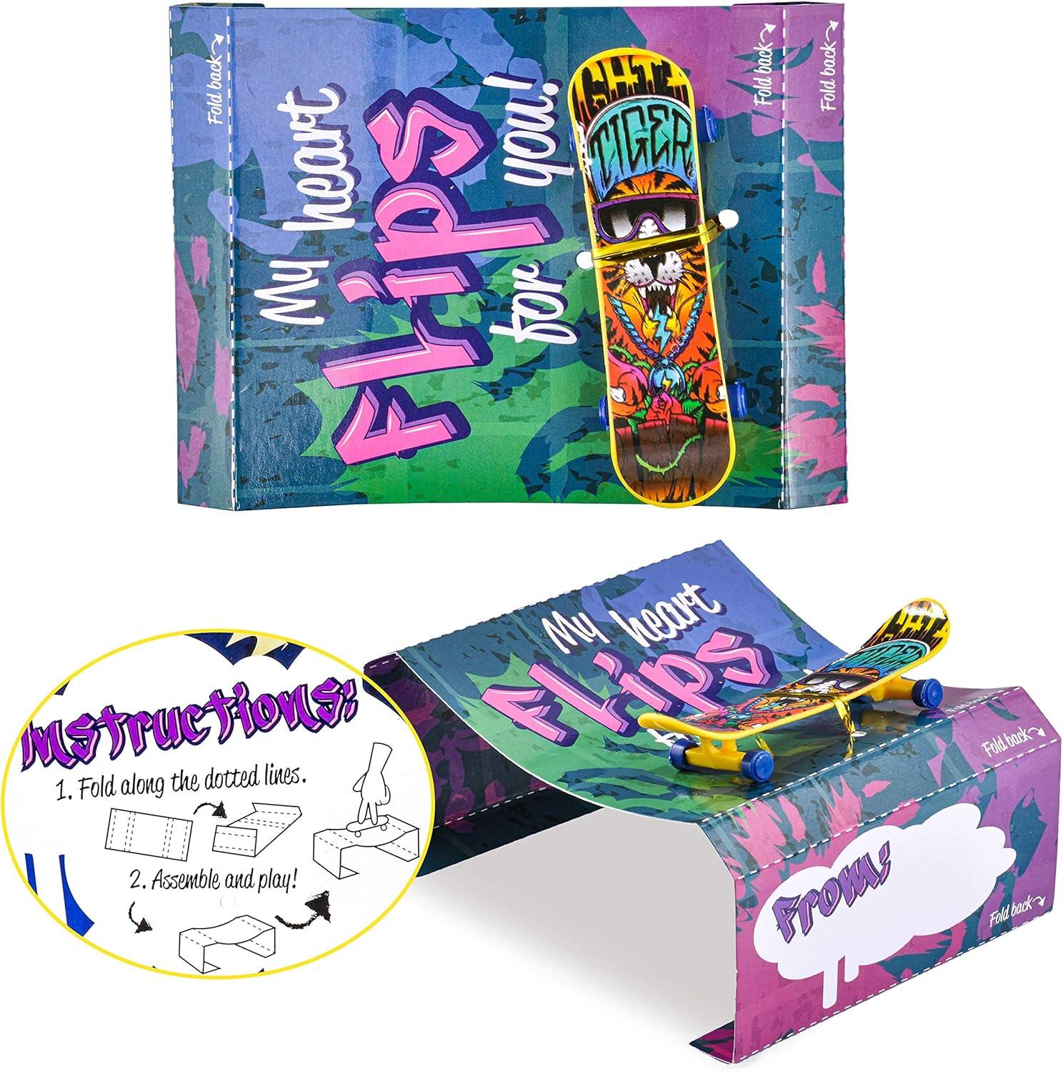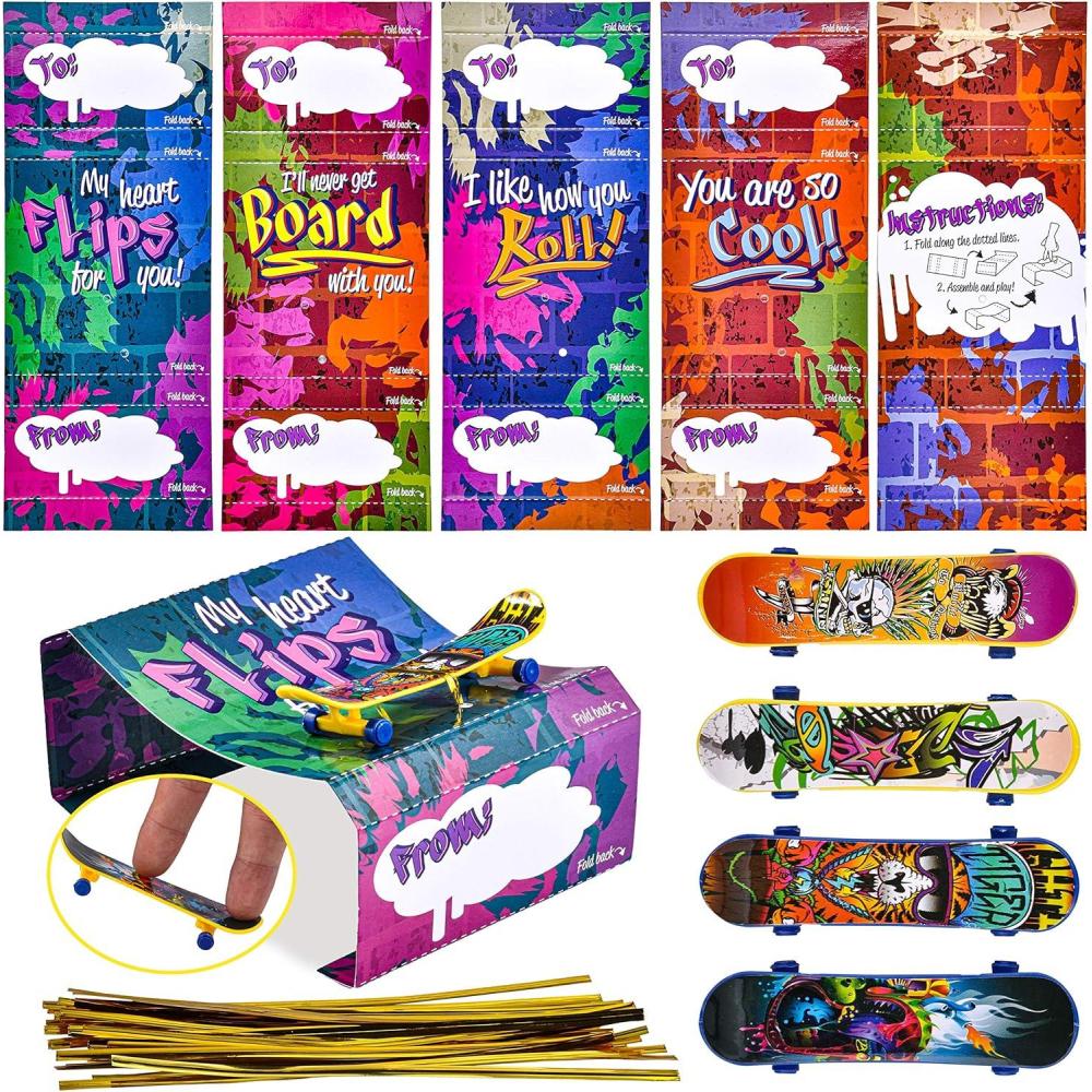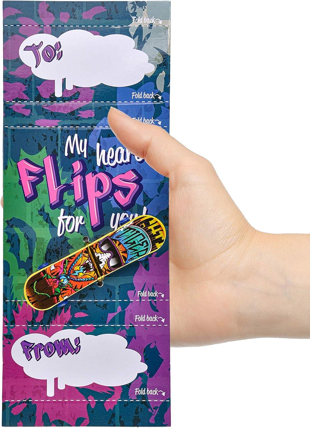 IDEAL GIFT. Our Finger Skateboards and Cards for Valentine Party Favors Set provides fun and entertainment for your kids! It’s a great gift option for kids’ school classroom prizes, gift exchange, love notes, and more!