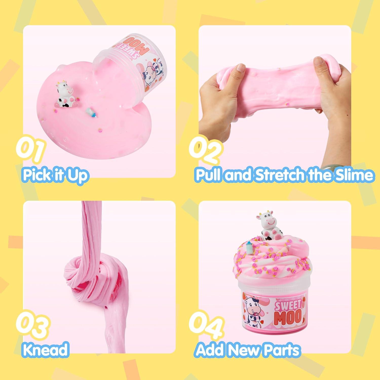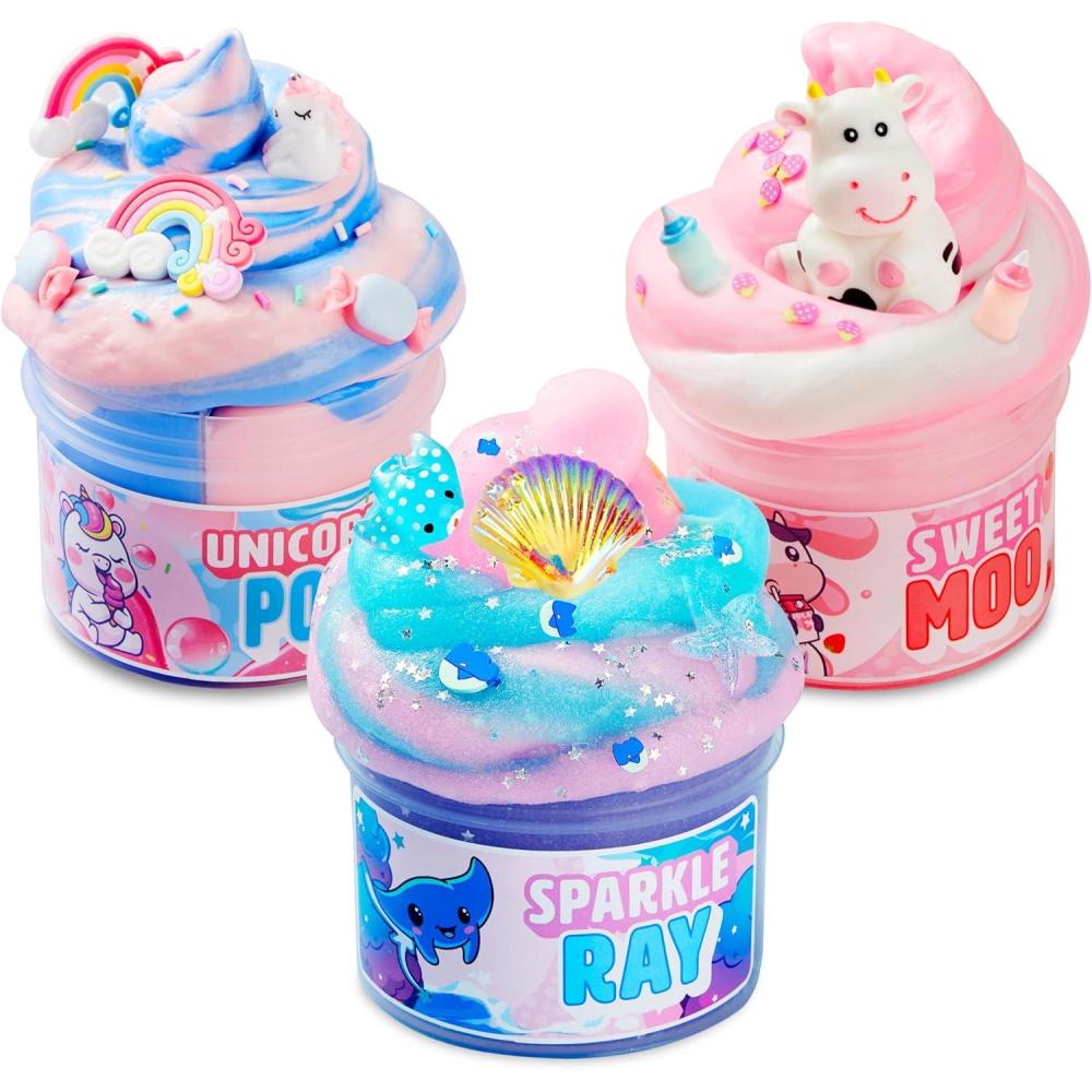SUPER VALUE FUN: Get ready for triple the excitement! This amazing slime kit packs 3 uniquely themed butter slimes: a sweet Cloudfin Manta Ray, a magical Bubblegum Unicorn, and a delightful Strawberry Milk Cow, complete with tons of adorable accessories for endless mix-in fun