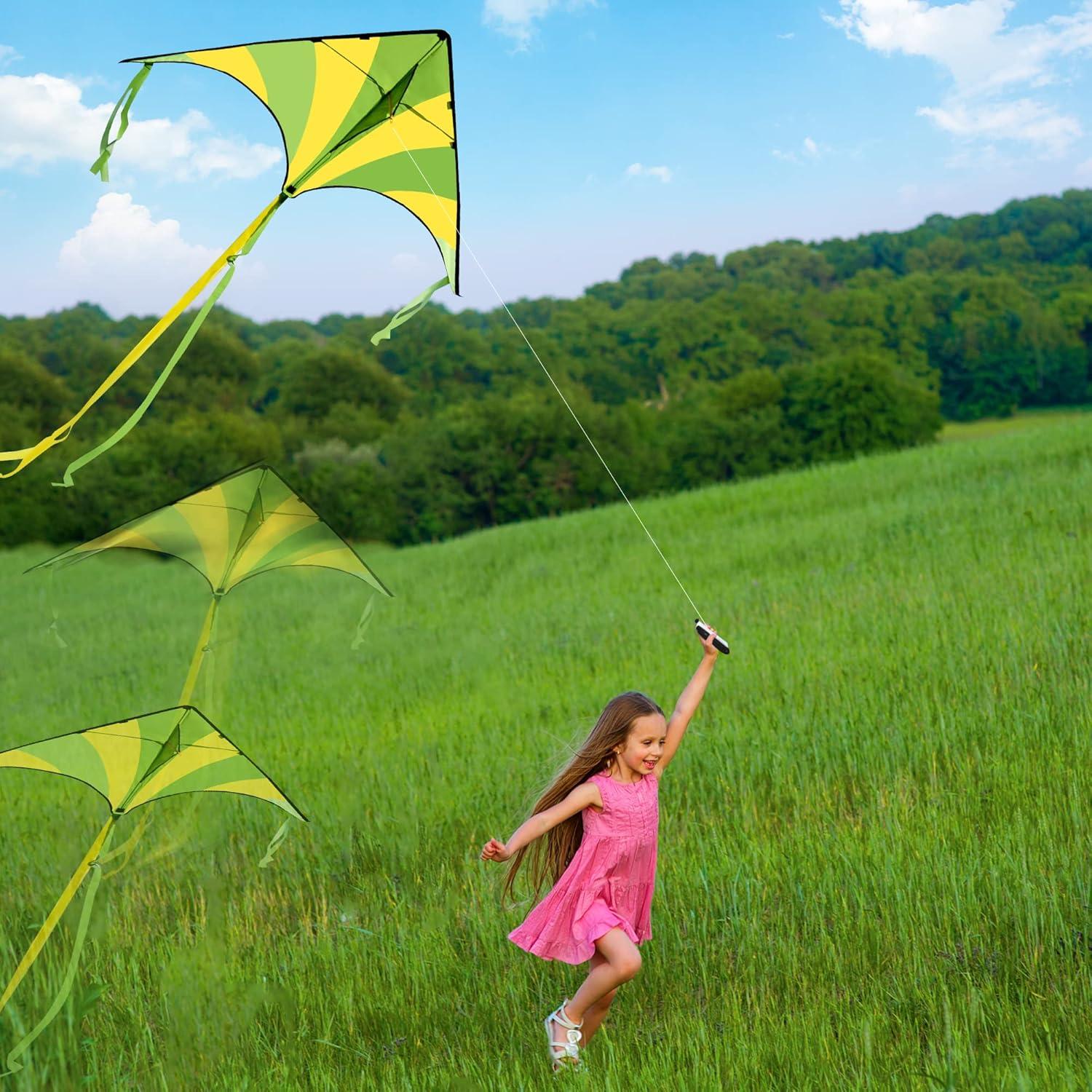 JOYIN 3 Packs Large Delta Kite Green, Blue and Rainbow, Easy to Fly for Kids with 262.5 ft String, Large Delta Beach Kite for Outdoor Games and Activities