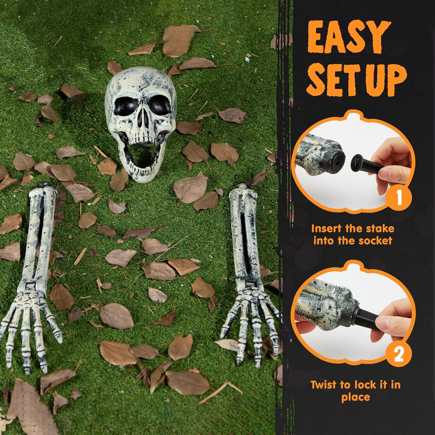 Perfect Halloween Prop: From halloween outdoor skeletons to skeleton hands reaching from graves, this set elevates any spooky theme. You can pair with other halloween lawn decorations like tombstones, groundbreaaker for a cohesive, frightful setup. Durable enough for annual reuse, it’s a timeless addition to your Halloween decorations arsenal.