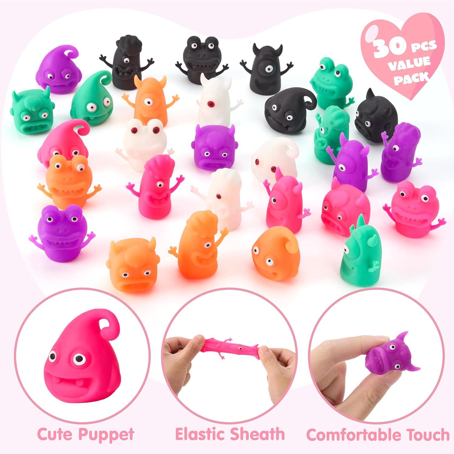 JOYIN 30 Packs Valentine's Day Finger Puppets with Cards, Classroom Exchange Gift for Kids, Valentine's Party Favors, Holiday Reward Prizes