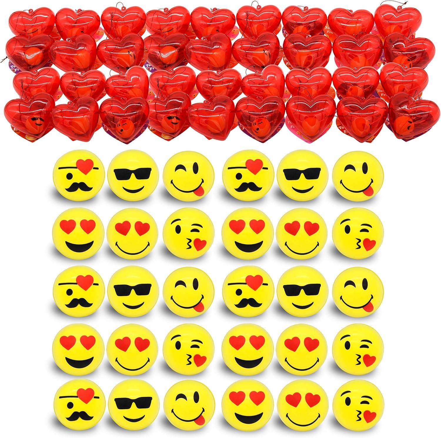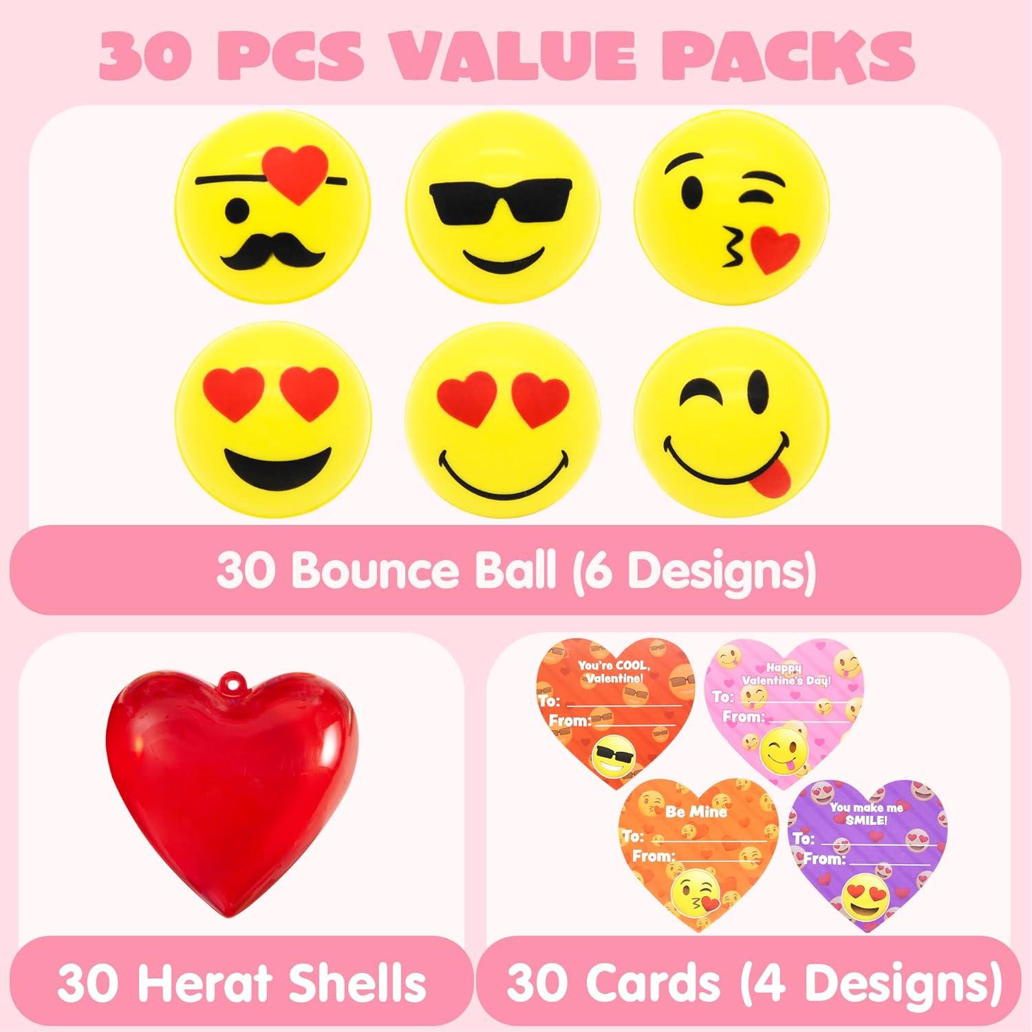 VALUE SET: JOYIN valuable Valentine's party favors set includes 30 bouncy balls, 30 red heart cases, and 30 valentine cards featuring 4 designs. Each heart-shaped case was prefilled with assorted bouncy ball