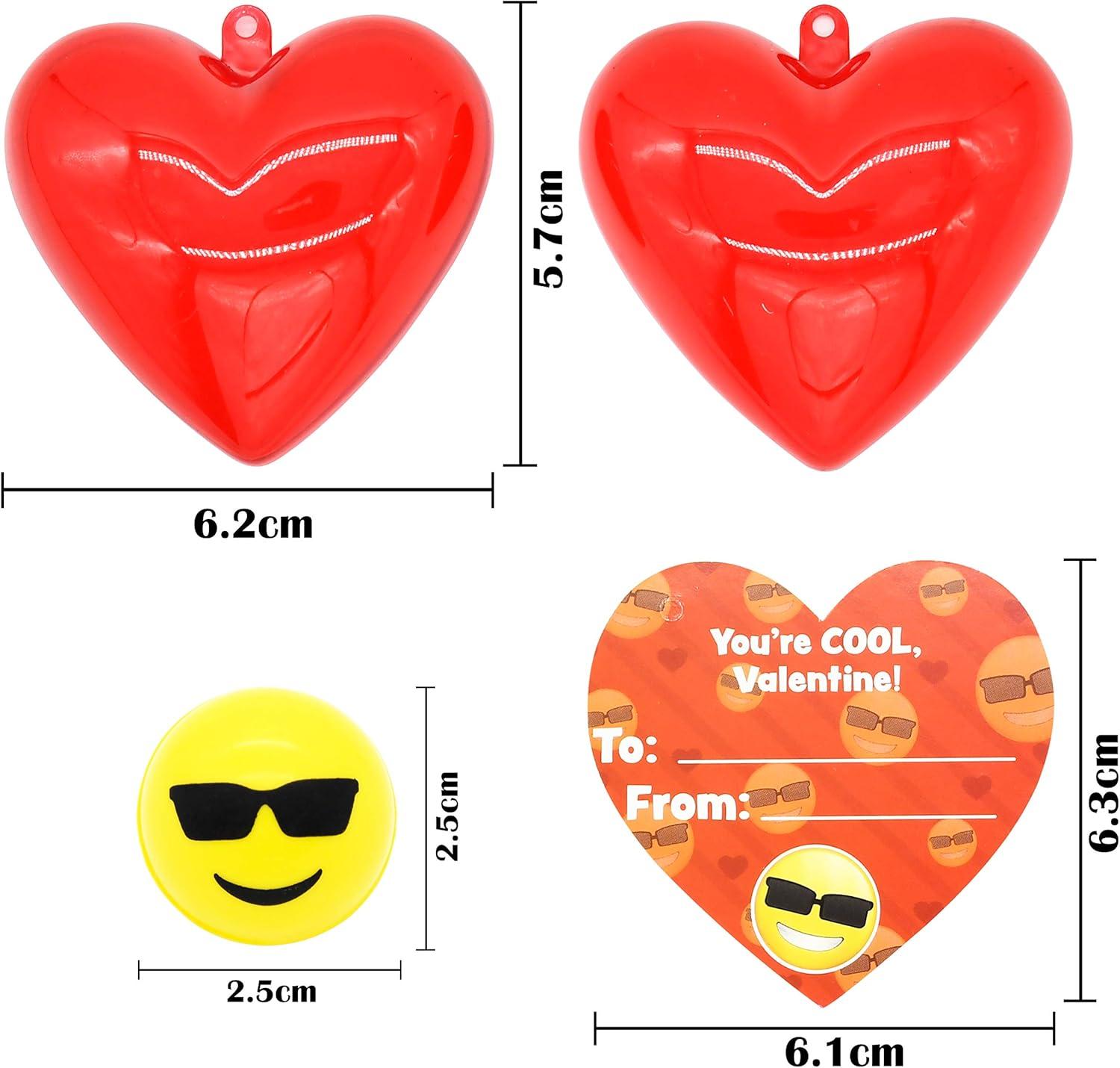 FUN VALENTINE: These cute bouncy balls were pre-filled into translucent plastic red heart shells. Our set also comes with thick paper heart shape valentine’s cards for kids. A fun way to encourage social skill development and a chance to express gratitude to family, friends, and classmates