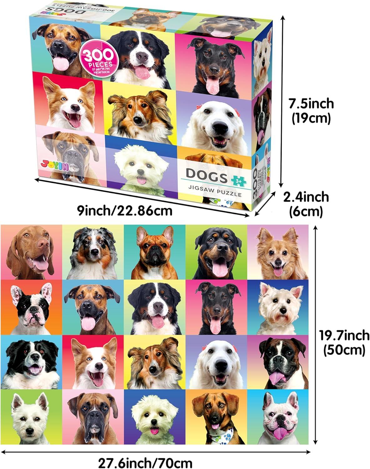 SUPER VALUE PACK. Our Pups puzzle includes 300 pieces of large jigsaw puzzle, these pieces are larger than standard puzzle pieces for improved dexterity and placement. The finished size is 27.6″ x 19.7″ inches. The full color poster is included for help in solving.