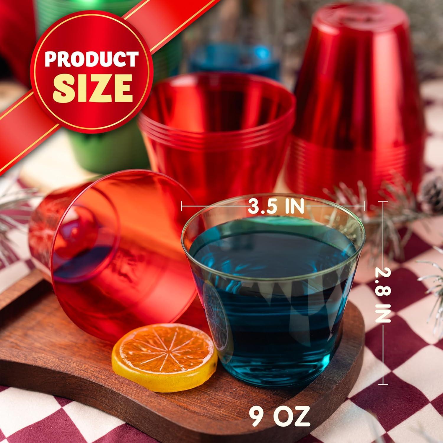 Disposable Plastic Cups: Our 9 oz Christmas Clear Plastic Cups Set includes 36 pcs disposable plastic cups in 2 colors (red cups and green cups), making it a great value for Xmas party supplies, allowing everyone to enjoy their favorite beverages.
