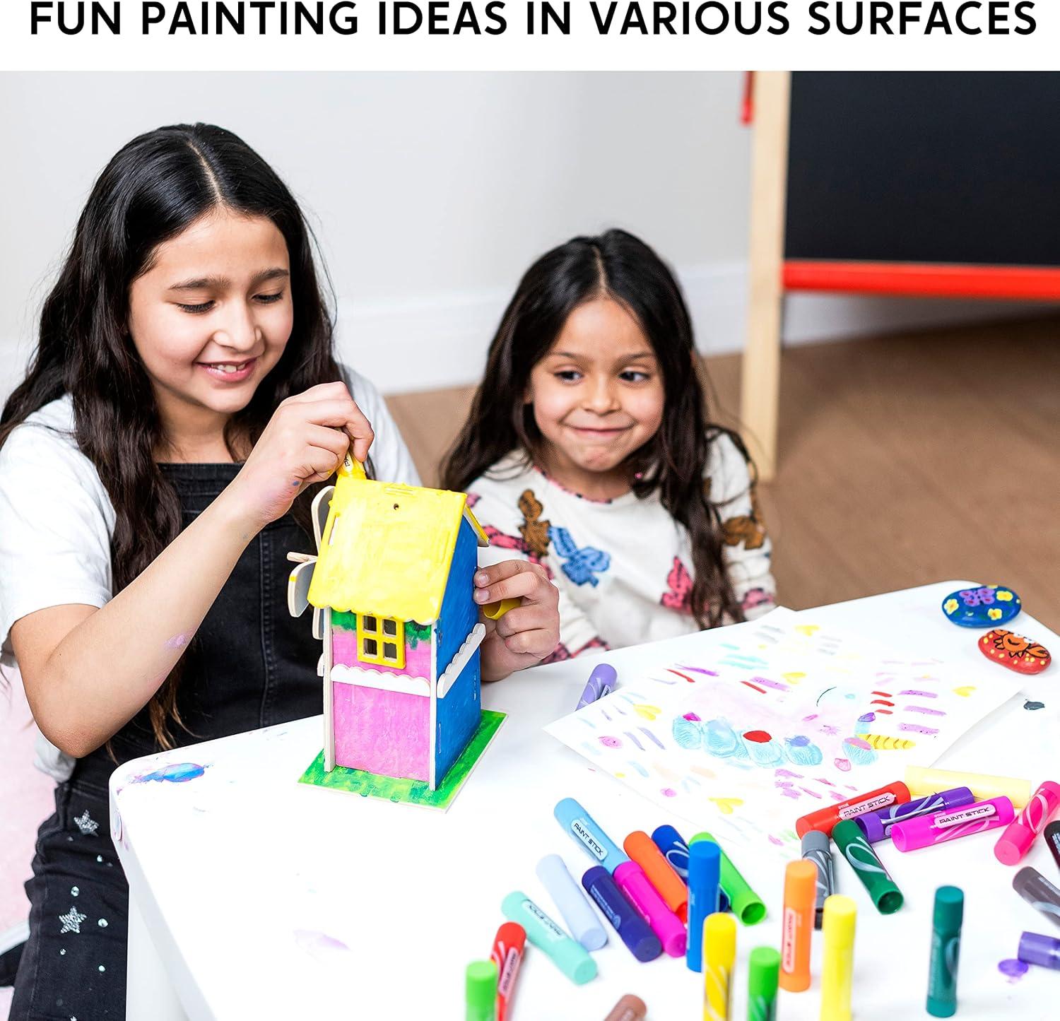 FUN PAINTING IDEAS INCLUDE: Our tempera paint sticks for kids are great for wood painting, chalkboard, and canvas. This sticks paint can be used for a variety of techniques like elbow and finger painting to explore creativity!