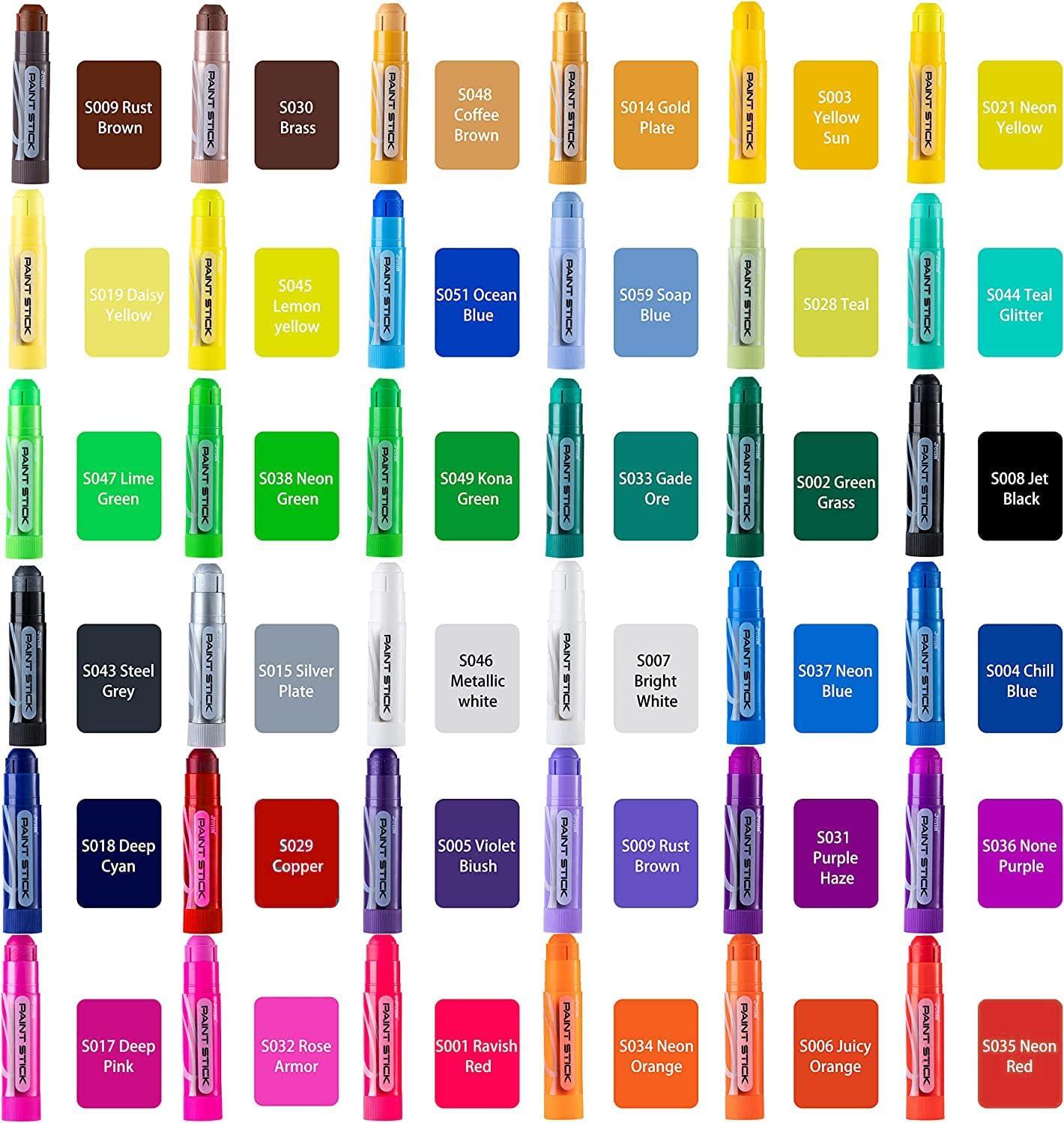 SUPER VALUE PACK: Our Vibrant and Quick Dry Paint Sticks for Kids comes with 36 Brilliant Colors(0.42oz/12g).This Non Toxic Colors includes 24 classic colors, 6 metallic and 6 neon colors.