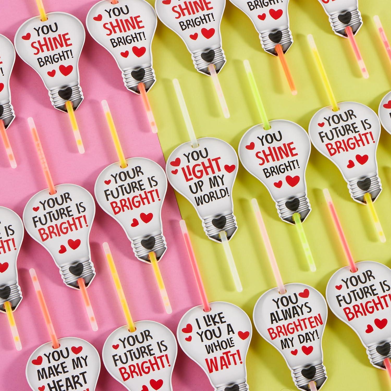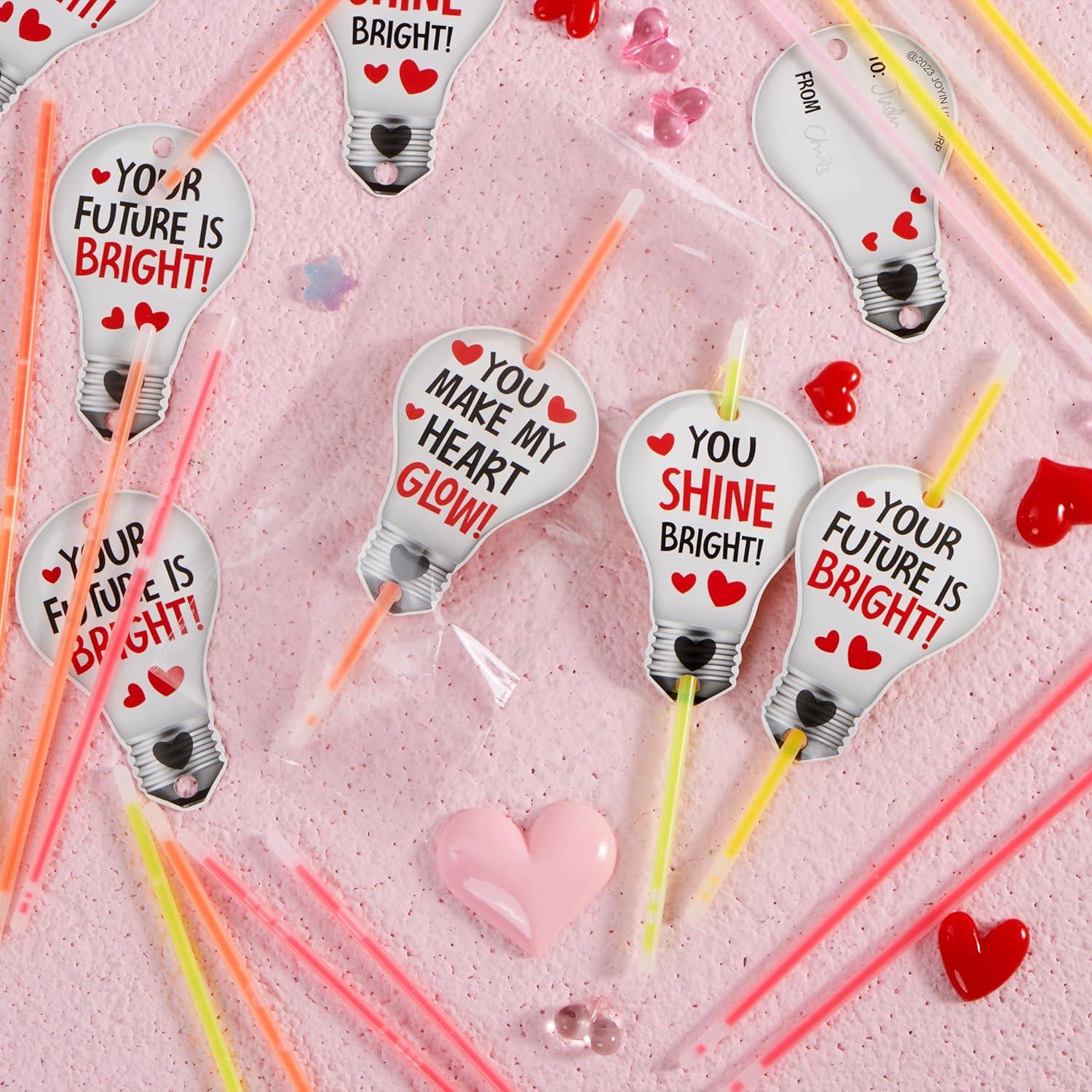 FUNNY GIFT. If kids bend the glow stick into a circle, connect the ends with a connector, it will turn into a glowing bracelet. Valentine's Day Cards are Perfect for Kids, Valentine's Day, Class Events, Gift Exchange, School Classroom Prize, Love Notes and any Occasions.