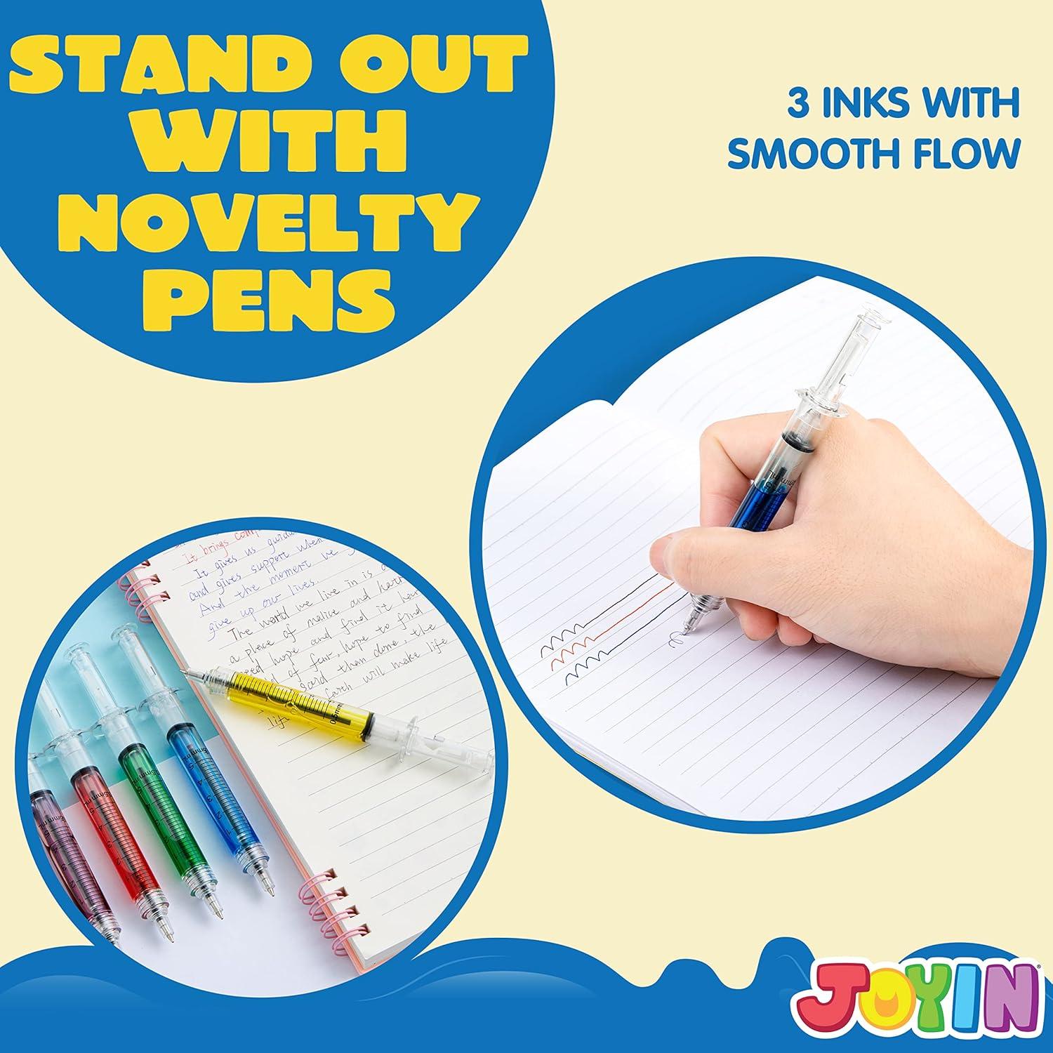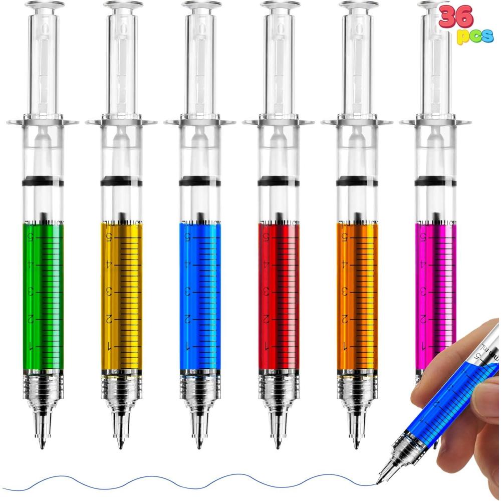 36 Pack Syringe Pens: Our Syringe Pen Set includes 36 pieces of multi color syringe shaped pens that include 3 ink colors to write in: Red, Black, Blue ink choice