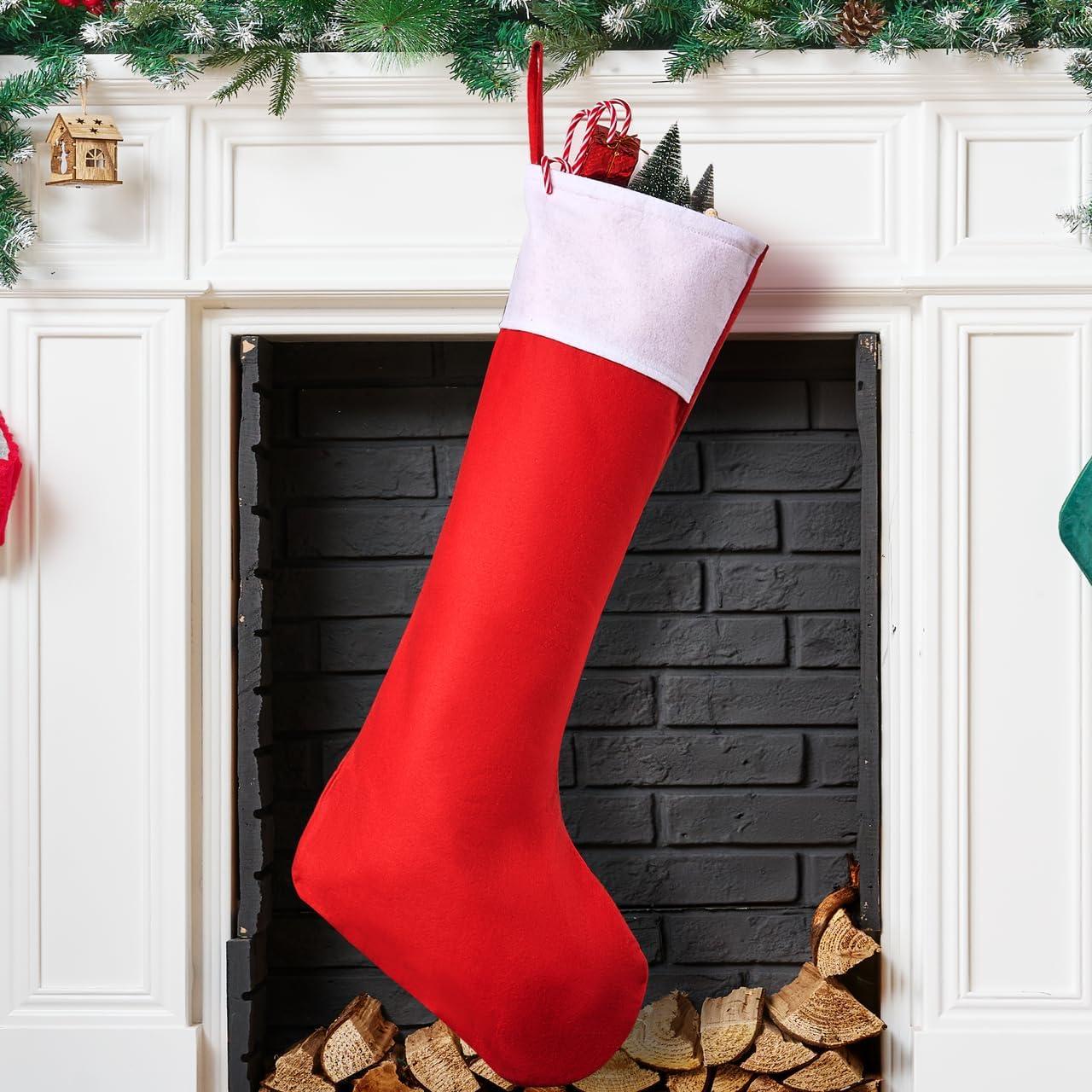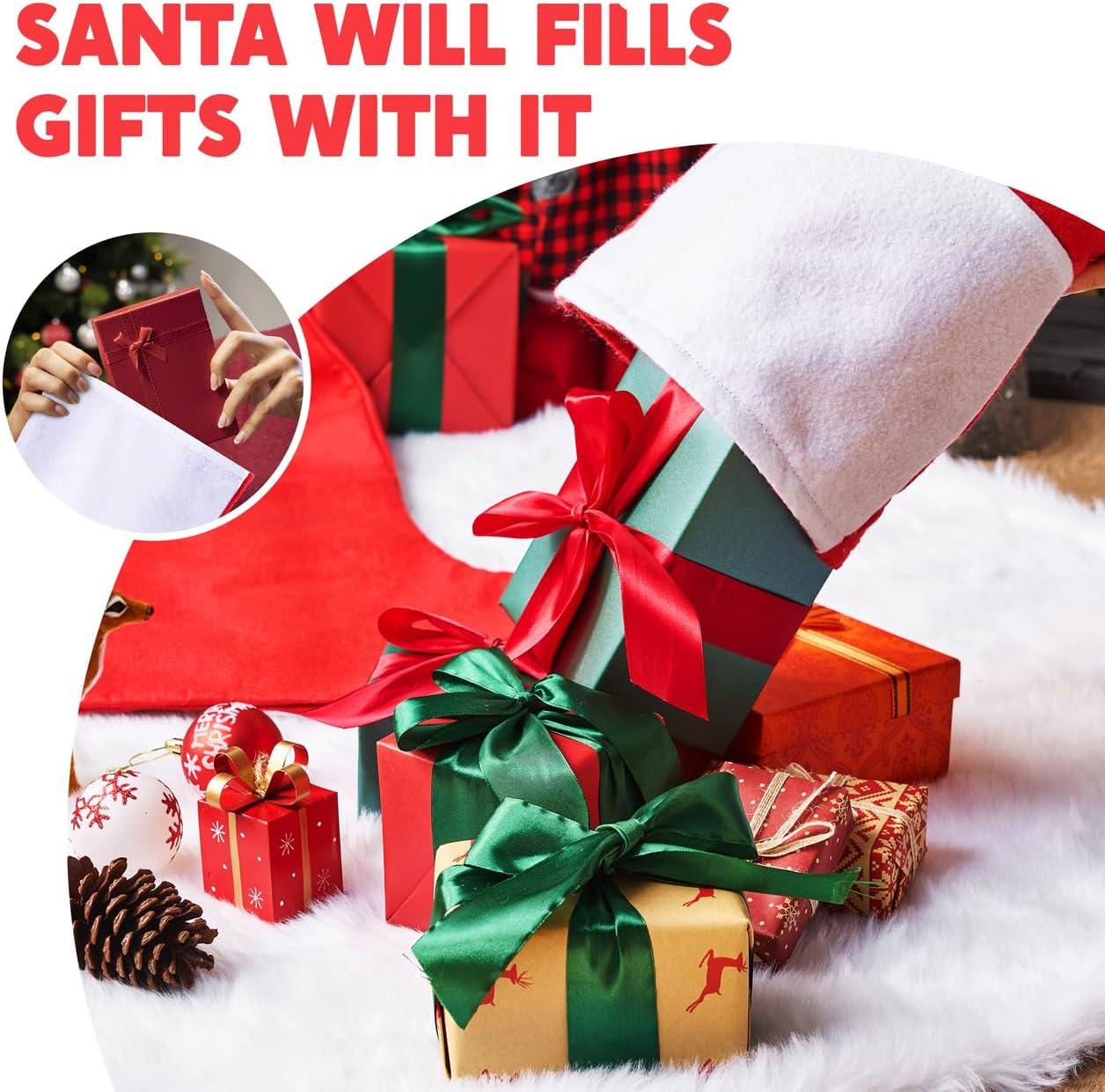 Wide Application. Versatile and eye-catching, this large Christmas stocking can be hung on Christmas trees, walls, doors, or draped over the fireplace, instantly transforming any space into a festive wonderland. Its vibrant red color adds a cheerful touch to your Christmas celebrations, making it ideal for parties and events.Whether used as a focal point in your living room or as part of your Christmas tree ensemble, it's sure to delight guests and family members alike.