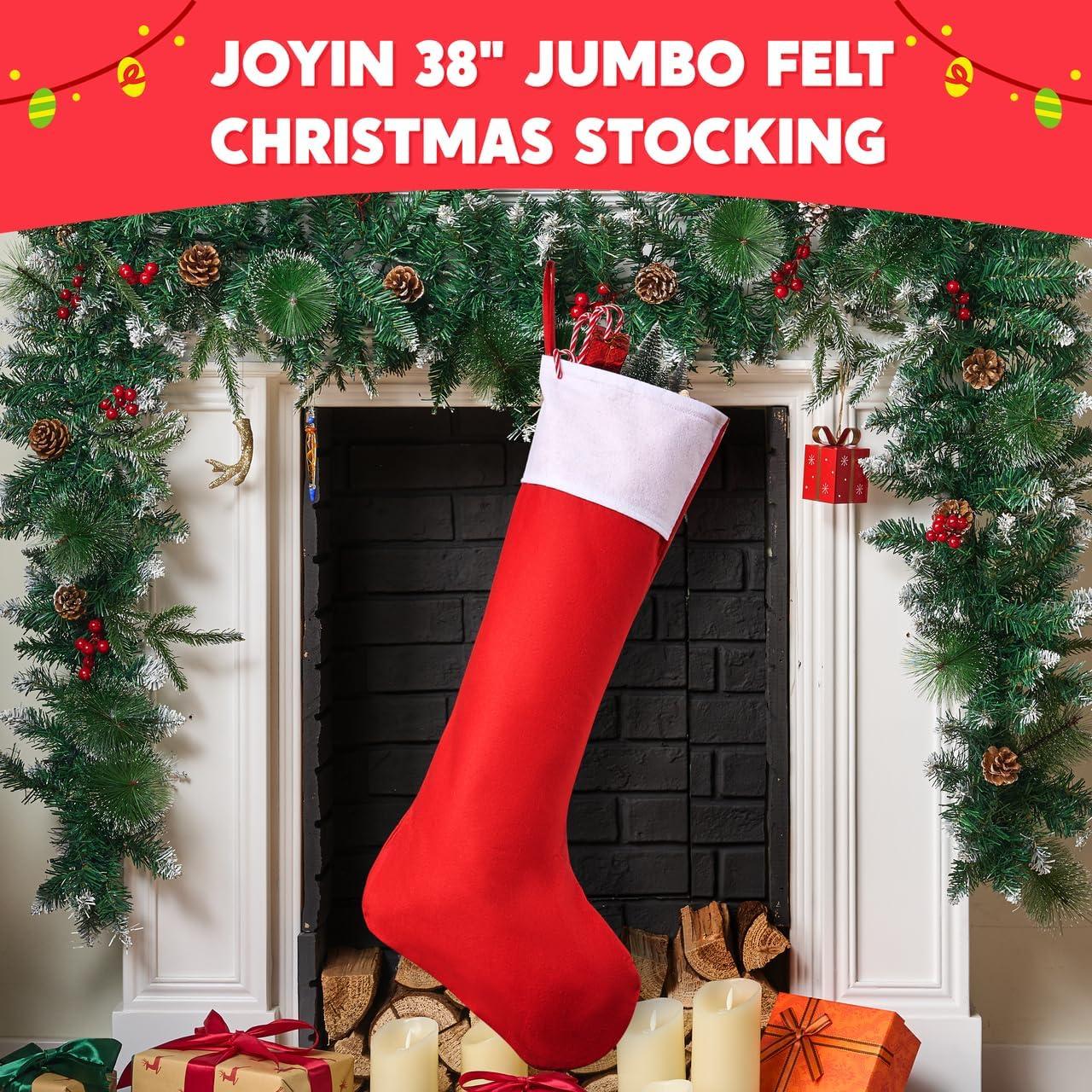 JOYIN 38" Jumbo Christmas Stocking, Personalized Extra Large Xmas Stockings, Felt Giant Soft Red Christmas Decor for Kids Adults Family Xmas Party Decorations Gifts(38 inch)
