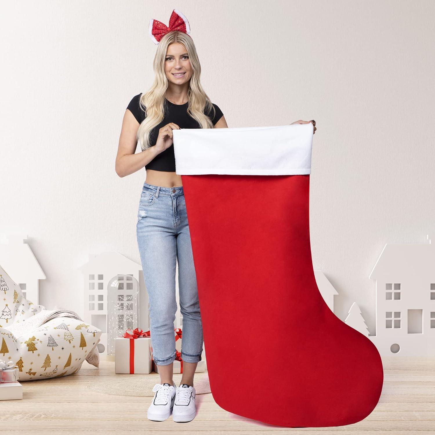 Perfect Accessory. Each package contains 1PCS extra large stockings Christmas.Elevate your Christmas vacation decorations with this impressive 38-inch jumbo red Christmas stocking, designed to hold an abundance of gifts and treats for the entire family.