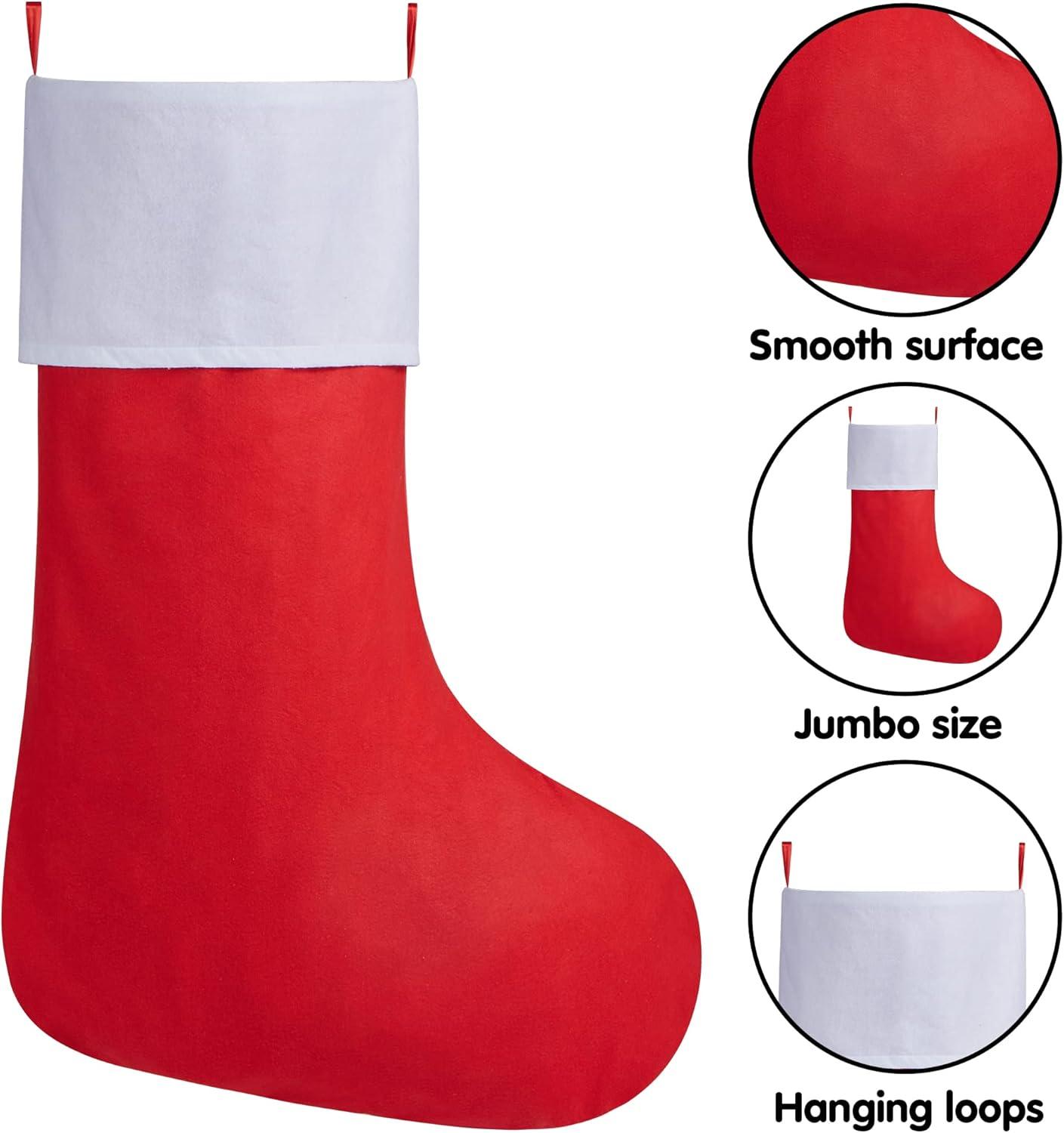 Wide Application. Versatile and eye-catching, this large Christmas stocking can be hung on Christmas trees, walls, doors, or draped over the fireplace, instantly transforming any space into a festive wonderland. Its vibrant red color adds a cheerful touch to your Christmas celebrations, making it ideal for parties and events.Whether used as a focal point in your living room or as part of your Christmas tree ensemble, it's sure to delight guests and family members alike.