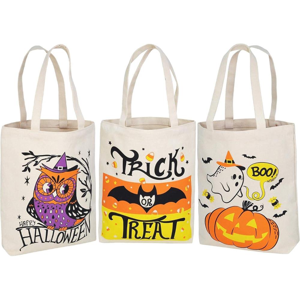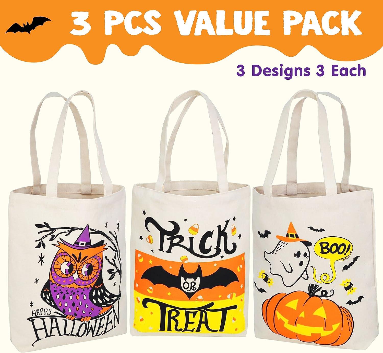 Value Set. This Trick or Treating Tote Bags includes 3 designs print that measures 13.75″ x 10.75″.