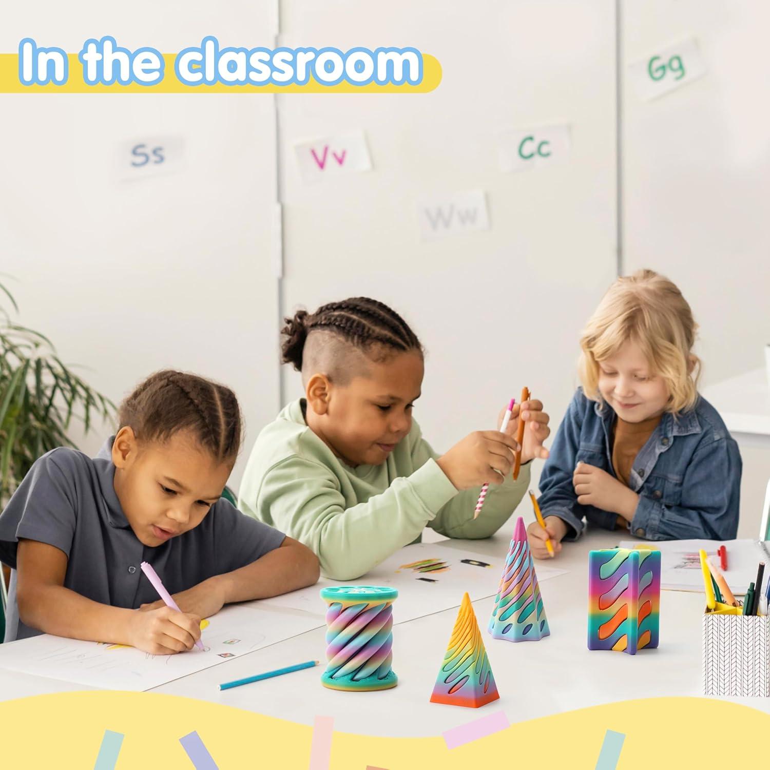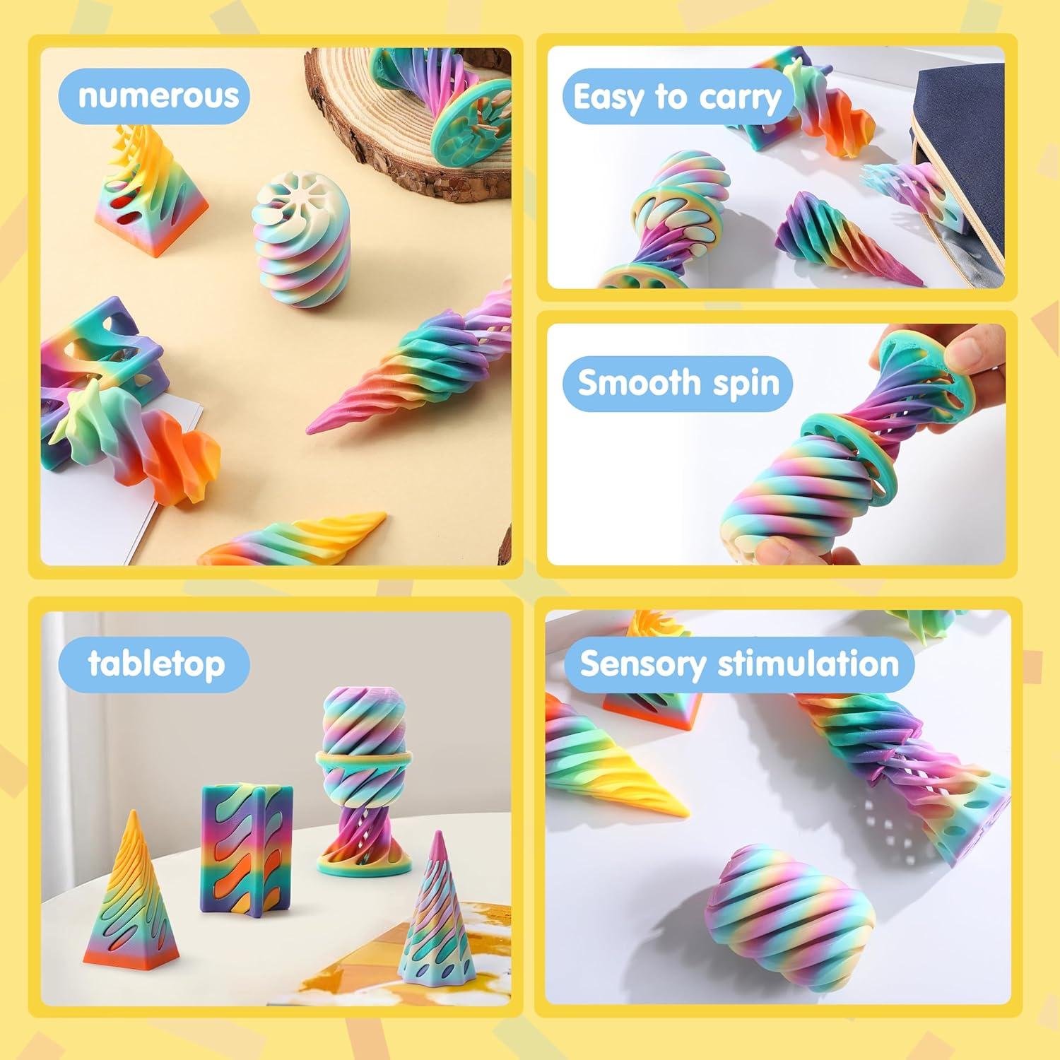 SUPER VALUE CONE SET: Get 4 pcs impossible cone fidgets toys! This awesome set includes 2 sleek cylinder shapes and 2 cool pyramid shapes, each boasting beautiful, calming gradient pastel colors
