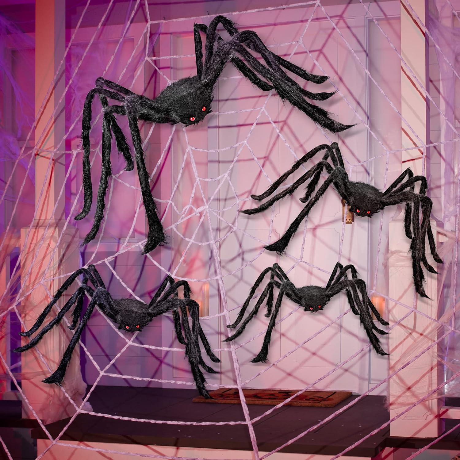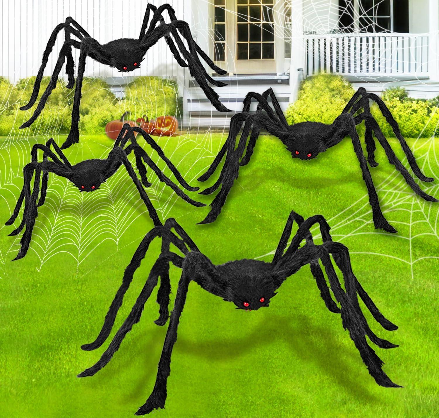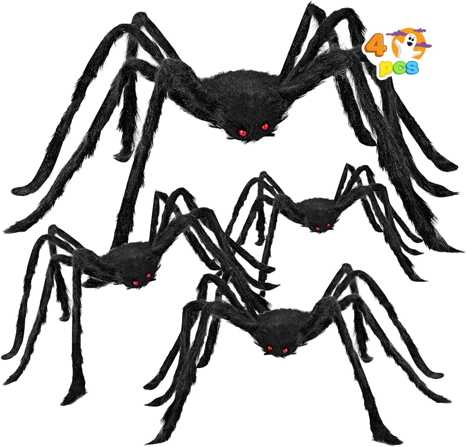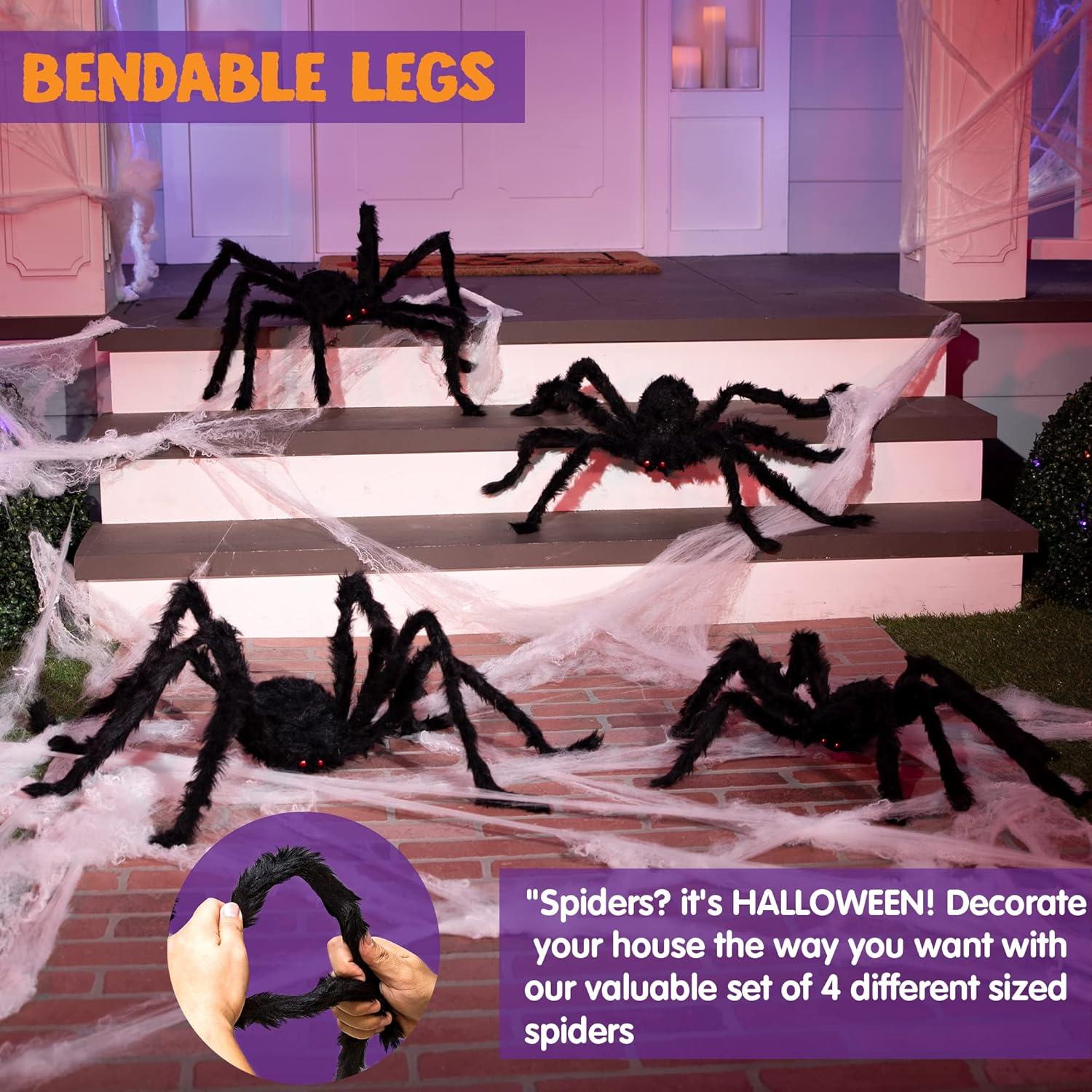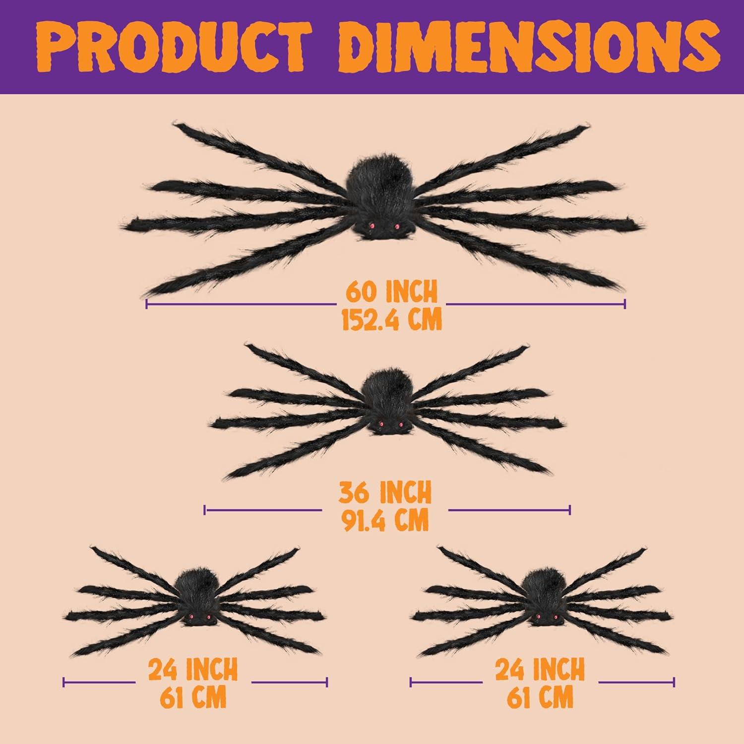 SUPER VALUE PACK:Package include 4 Black Hairy Spiders. Variety sizes fit most other Halloween decorations no matter big or small places.