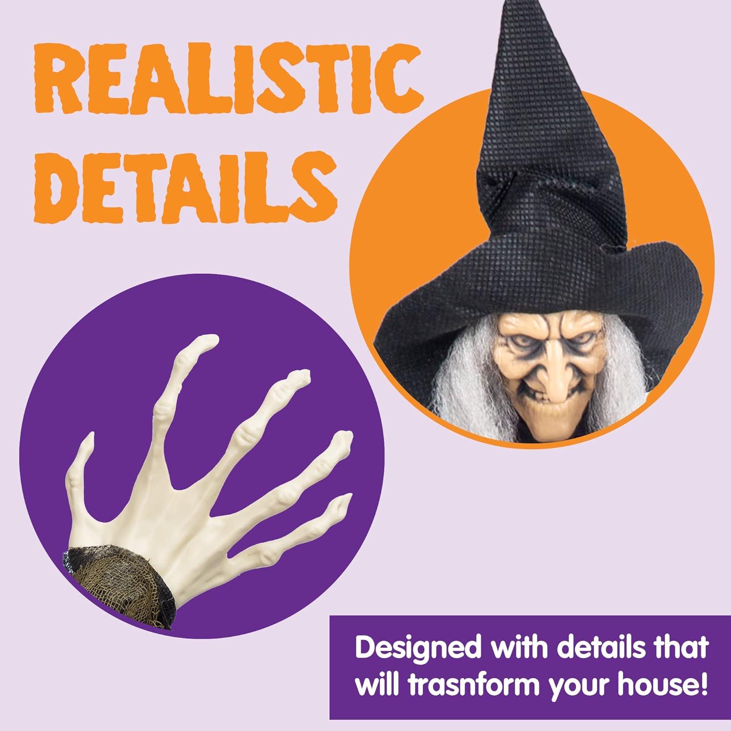 ADJUSTABLE ARMS: The arms of these Halloween decors can be adjusted, put in the front to act as if she is flying to guests, or put on the side to act as if she is floating in the air.