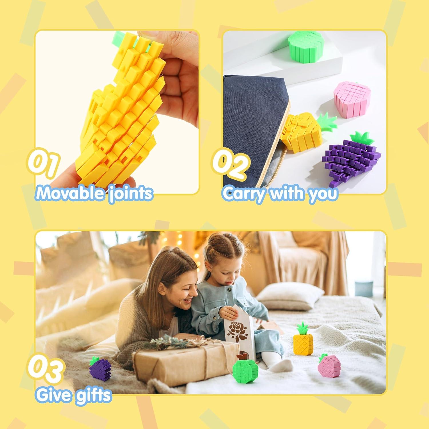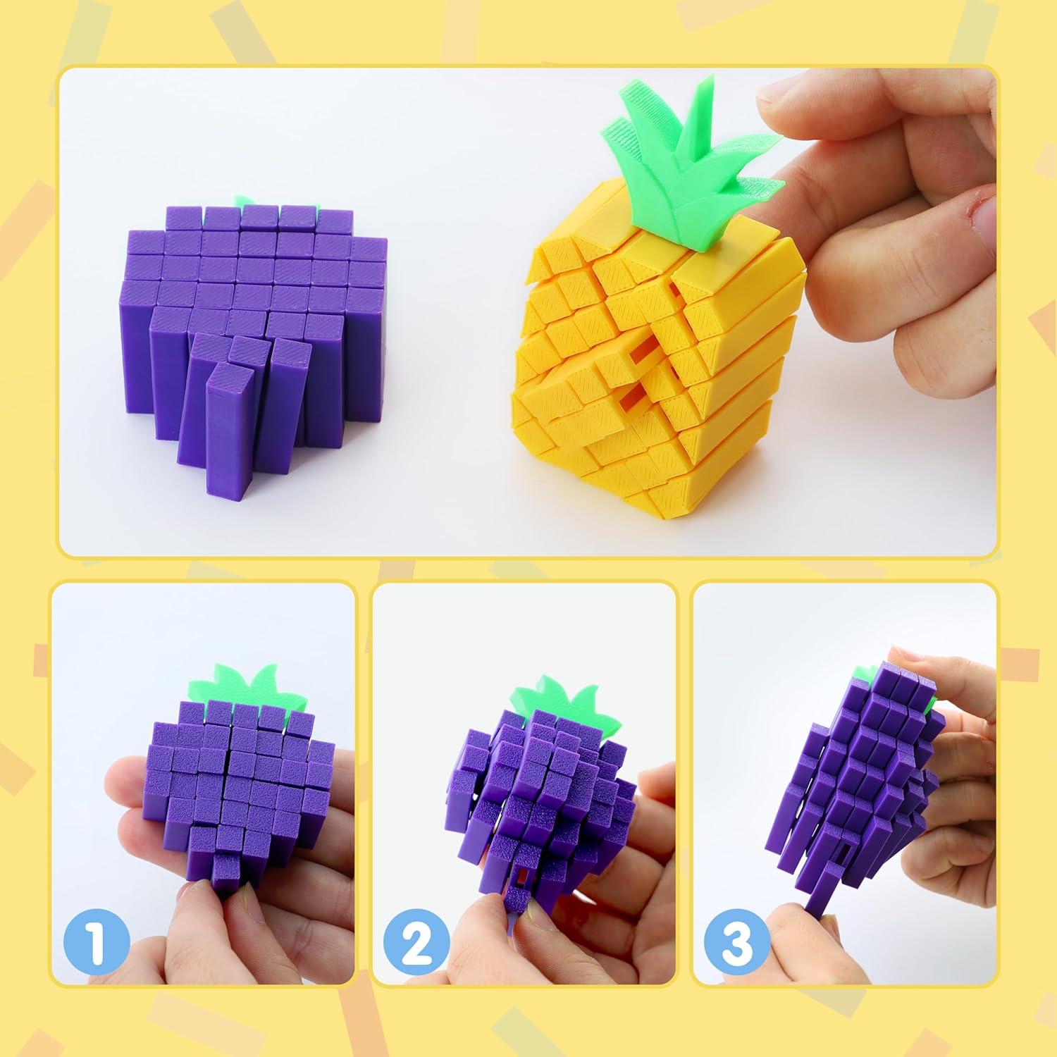 Super Value: This 3D Printed Fidget Toys set includes 4 different fruit fidget toys—pineapple, strawberry, grape, and apple. Each toy is made of interlocking mini cubes, making them fully flexible. You can twist, rotate, and reposition them for endless fun and fidgeting! A must-have for 3D Printed Fidget Fruit Toy lovers