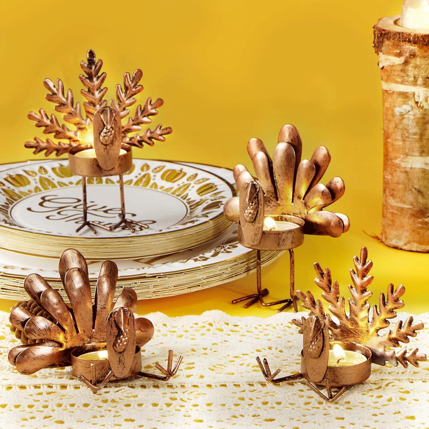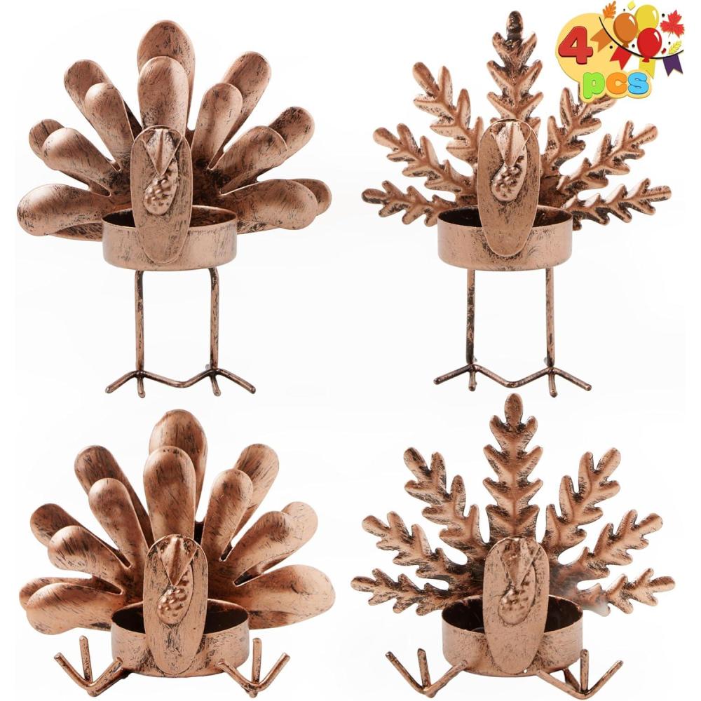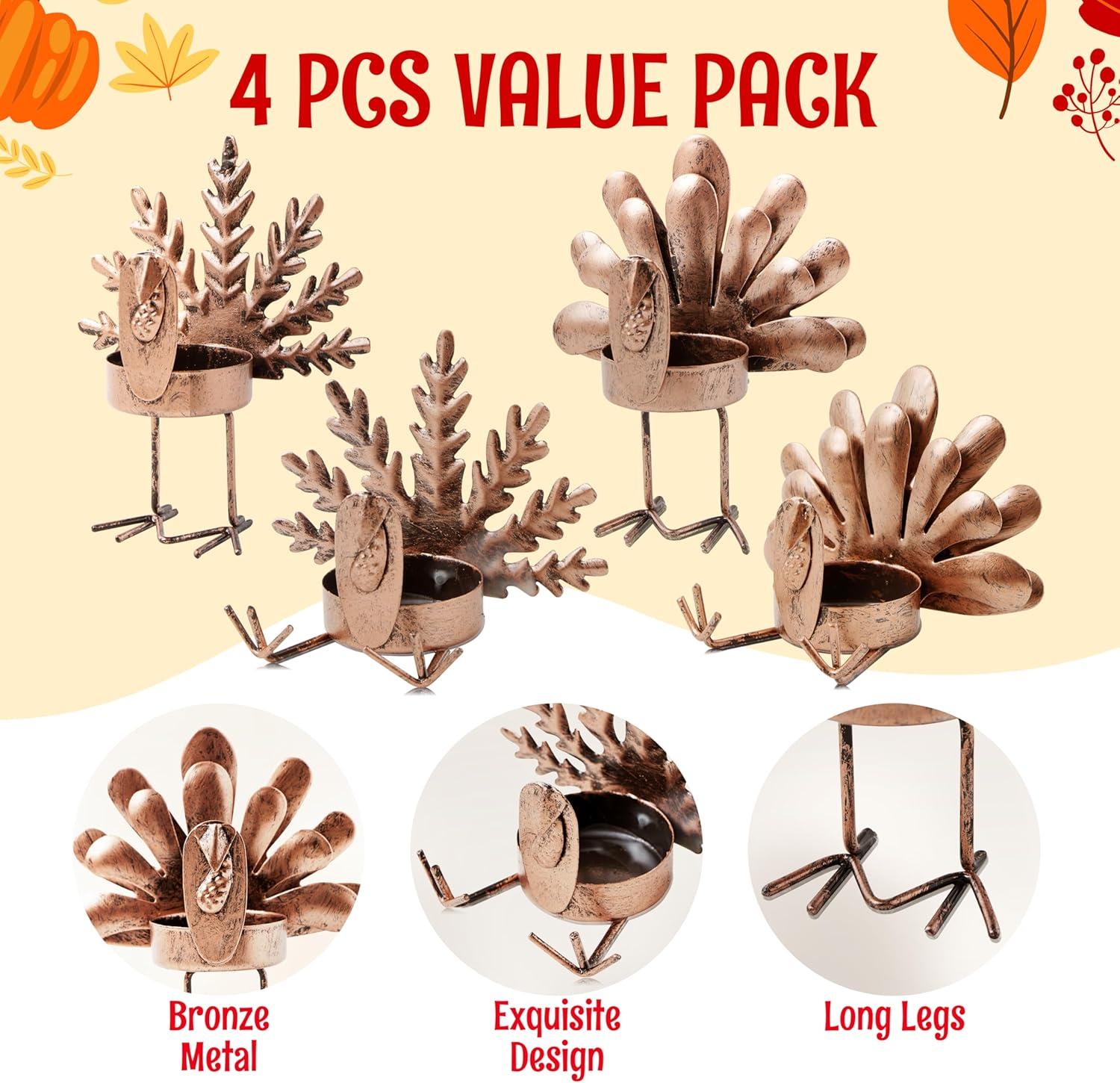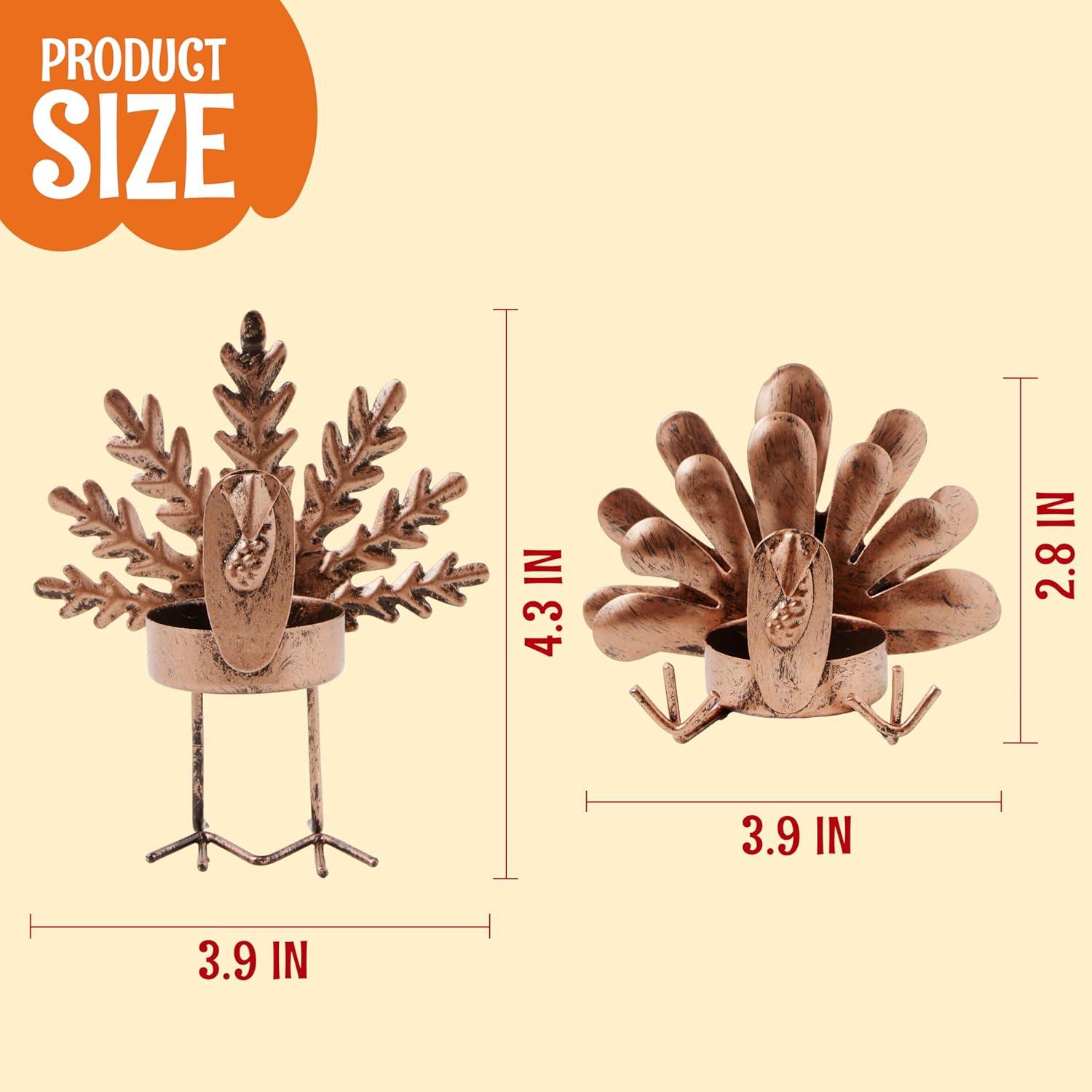 Super Value Pack: Set includes 4 Iron Thanksgiving Turkey Tea Light Candle Holders, Crafted from durable iron, each holder showcases a charming reindeer design, perfect for adding a touch of holiday cheer to any room. Each holder measures 4″x 4.3″, providing ample space for standard tea light candles.