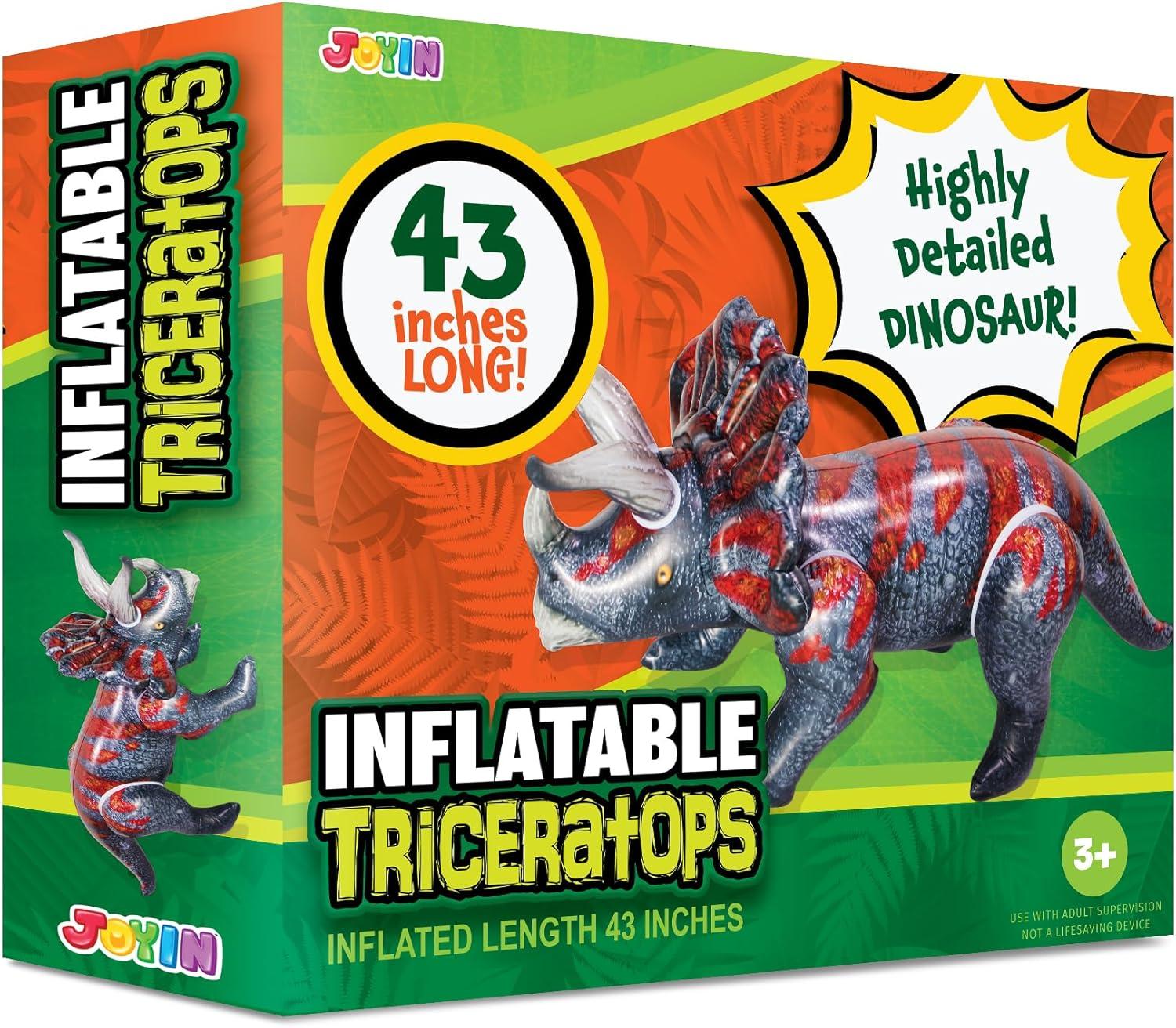 COOL & REALISTIC: Best 43” length Inflatable Triceratops for Birthday Party Decorations, Dinosaur Party supplies