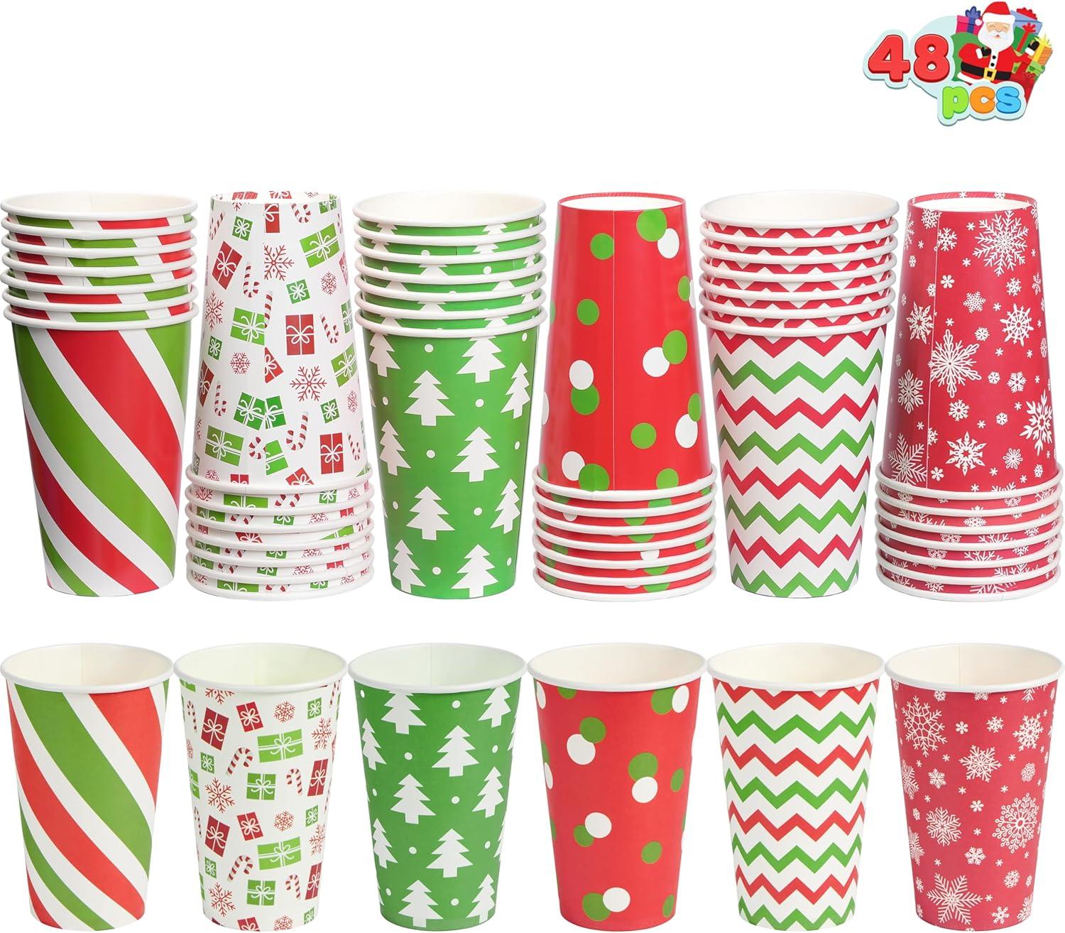 Wide Application: Christmas disposable coffee cups designed to accommodate both cold and hot beverages, ensuring they're suitable for any drink preference during Christmas, New Year, Thanksgiving and more. These Christmas coffee cups, party supplies and favors are suitable for adults, teens, boys and girls birthday parties, baby showers, weddings, picnics, camping trips, BBQ, family gatherings and holiday celebrations.